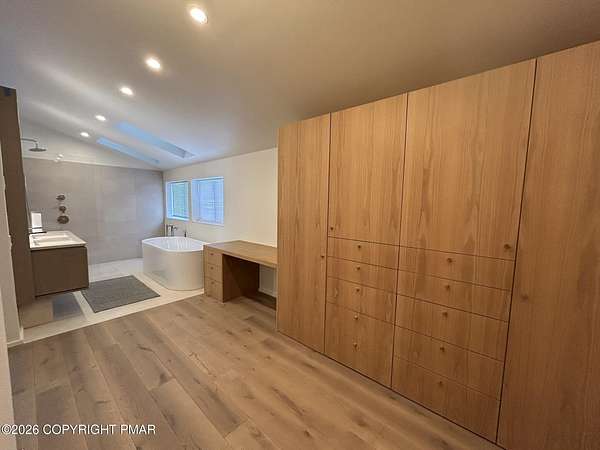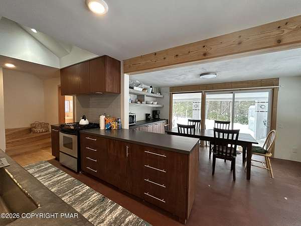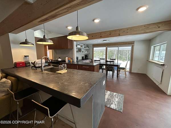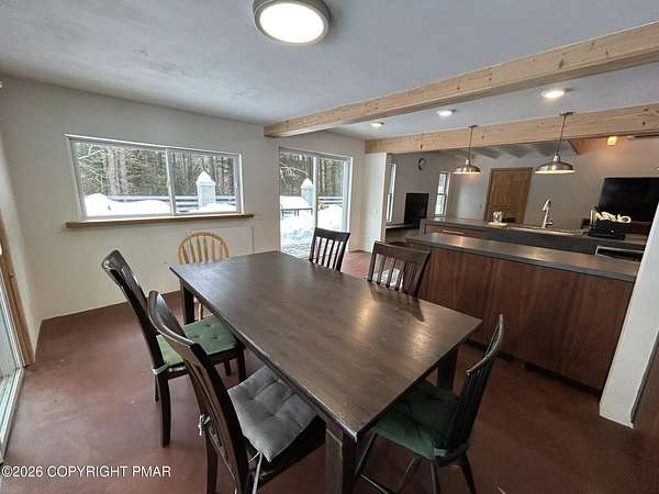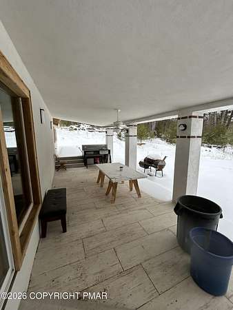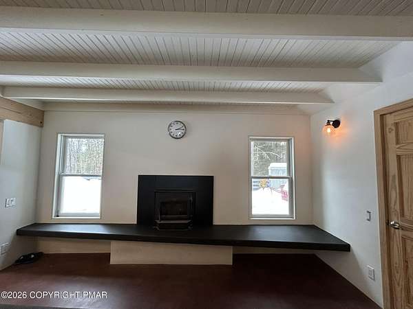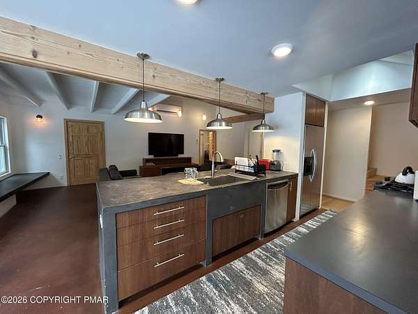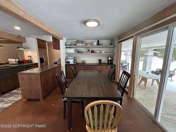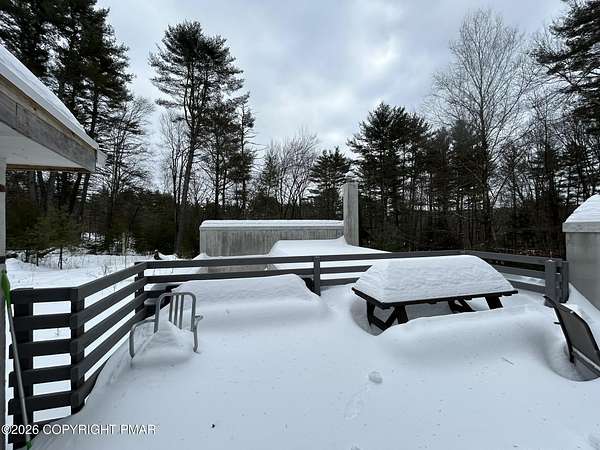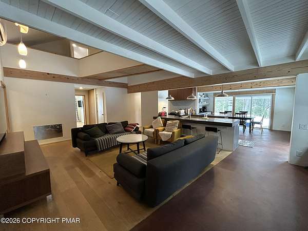 Hidden in the woods of Cresco, this private retreat sits on acres of serene land with exceptional privacy. The open-concept design showcases custom cabinetry and high-end finishes throughout, with expansive decking wrapping the home and multiple sliders leading to private deck spaces. The primary suite features a stunning spa-inspired wet room with soaking tub, walk-in shower, double vanity, and separate commode. Four bedrooms, two full baths, and a cozy sitting area with wood-burning stove provide both comfort and flexibility. Complete with an outdoor kitchen and seamless indoor-outdoor living, this wooded oasis offers refined mountain living at its best.