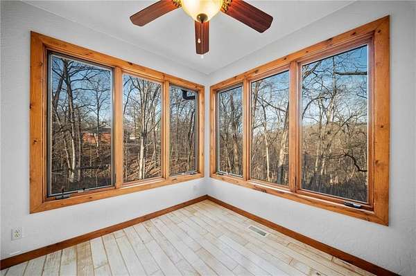 Tucked on a wooded 2+ acre setting just minutes from Downtown Rogers & Lake Atalanta, this one-of-a-kind retreat blends luxury amenities with character & story rarely found in today’s market. The expansive home unfolds through multiple living spaces including a primary living room, vaulted family room, flex space, sun nook, & game room. There's space & privacy for the whole family with 2 master suites, a built-in twin guest bedroom, and 4th bedroom with en suite bath. The kitchen anchors the home with a 48" 8-burner gas range with double oven, 5' SubZero fridge/freezer, abundant cabinetry, pantry storage, & wet bar. The raised deck overlooks the pool, stone patio, fire pit, & mature backyard trees. Walking through this property is an experience unto itself as you discover its built-in treasures like the stained glass details in the master and kitchen or the salvaged slate chalkboard floors in the basement. This home’s story has evolved over decades & is waiting for your next chapter to be written within its walls.