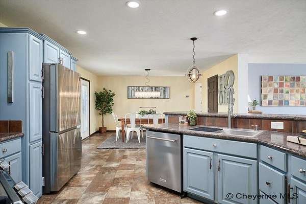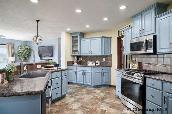 Take in the scenic views from this lovely home with stylish features. The garage will appeal to everyone as it will accommodate cars, recreational toys and boats, work benches, freezers and is equipped with 220. The kitchen has plenty of counter space and cabinets and a large gas stove. All the bedrooms are large and have walk in closets. The primary bathroom has a garden tub and a large shower with bench. The office space is great for remote workers or kids that home school. Many of the light fixtures have been updated with stylish fixtures. The laundry room has lots of features which include a counter for folding clothes, sink, storage cabinets, drop zone, broom closet and walk in pantry. There are stairs that lead to an attic that could be finished and used for rec room for gamers, crafts, play room, storage, or a great spot the for hunting equipment. Outside there is a 12x16 shed, chicken coop and over 6 acres of pasture for horses. The home is close to the Gilcrest Elementary school, and the Bunkhouse Bar and Grill. For outdoor enthusiasts, the home is a short distance to fishing, camping, and hiking trails.