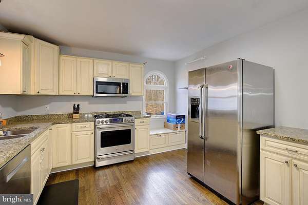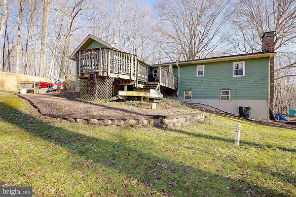 Enjoy the peaceful, rustic feel of nature in this spacious rambler with a full basement, set on a private 3.3-acre wooded lot in sought-after Dunkirk. Surrounded by abundant wildlife-including frequent deer sightings-this property offers true privacy while still enjoying a fantastic north-county location close to shopping, restaurants, and an easy commute to Joint Base Andrews or Washington, DC. This well-built home features three bedrooms on the main level, including a primary suite with a full bath, ceramic tile flooring, and a soaking tub. The walk-out lower level offers a functional fourth bedroom, a third full bath, and flexible living space ideal for extended family, guests, or multigenerational living, with sliding doors providing private access to the side yard. The expansive lower level includes a brick fireplace with a wood-stove insert, making it well-suited for a private living or recreation area and easily adaptable for an in-law or au pair suite. The main level has been freshly painted and all carpet is brand new!! The kitchen has granite countertops, stainless steel appliances, a gas range, and custom cabinetry, opening to a large country-style kitchen and dining area-perfect for gathering multiple generations. Additional living space includes a living room and separate family room with French doors leading to the deck, overlooking the serene wooded acreage. Main floor areas have original hardwood floors. Major updates include replacement windows, a roof installed approximately 10 years ago (2012), and a new drain field installed in 2005. A rare opportunity to enjoy privacy, flexibility, and space for multigenerational living-all in one beautiful setting!