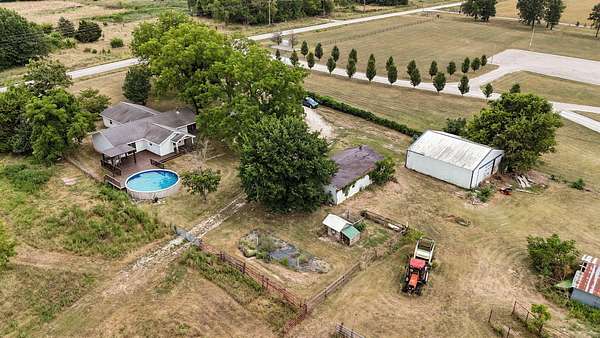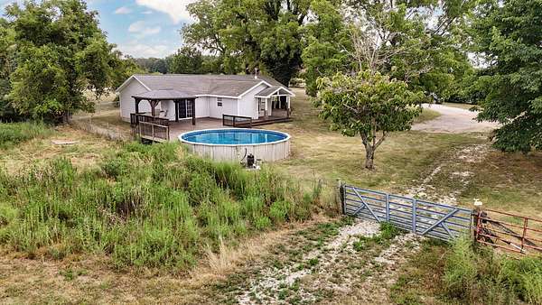 This is a fantastic hard to find four bedroom two bath home. Over 2000 ft.. Lots of updates. HVAC system was updated/new in 2023. Large open kitchen with easy close Hickory cabinets. granite countertops and breakfast bar. New lighting as well, Formal dining room. Newer windows all the way around. Newer pellet stove. Roof is only about 12 years old. Good size bedrooms. Big utility room with its own door. Fantastic deck with a pool and wired for a hot tub and pergola is great for entertaining and barbecues. Large pond stocked with fish. BIG ones!!! Have the whole family out to the farm. Very nice machine shed. utility shed and old milk barn that has been turned into a garage. Chicken coop and garden area. Nice corral for working cattle. Bring all of your animals and enjoy. Great location. Next to a Fantastic Wedding Venue. Might make a Great AB&B ??? Easy access to I 44. Just minutes from Mount Vernon, Republic, and Aurora.
