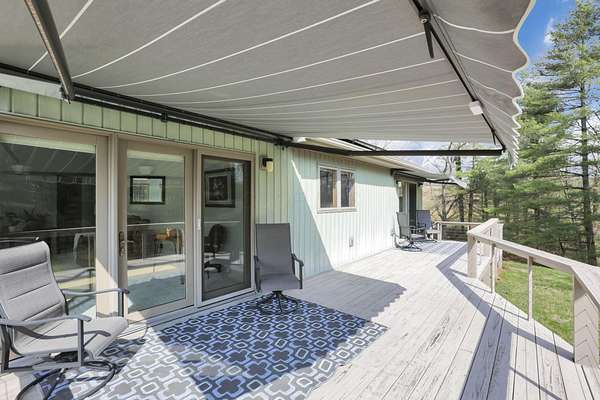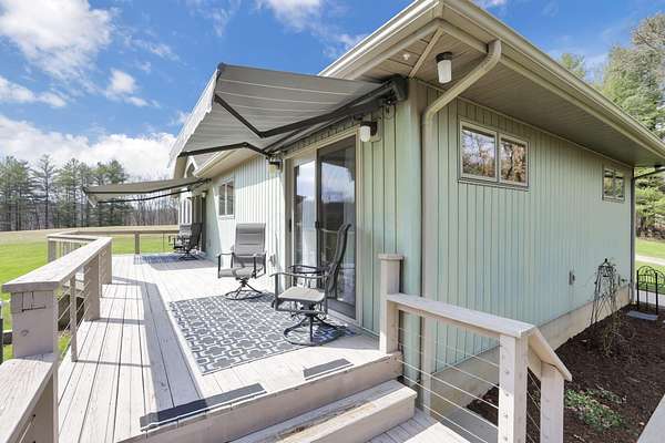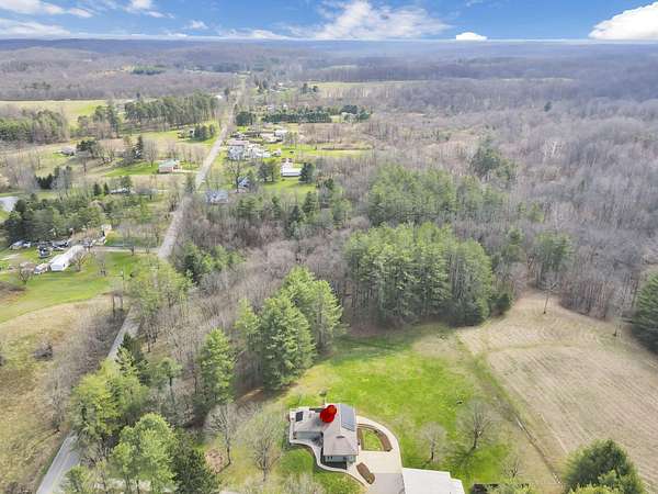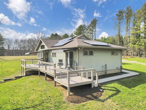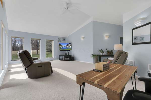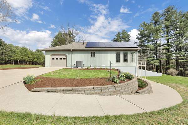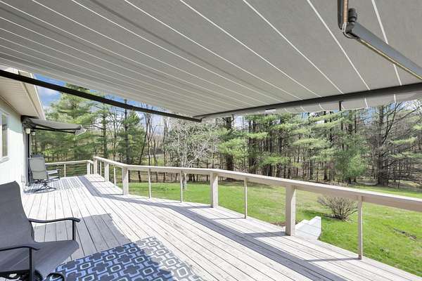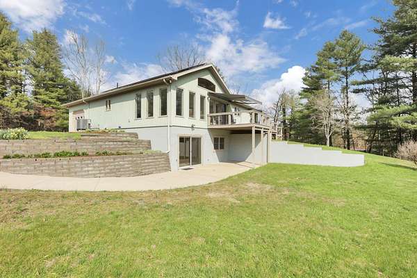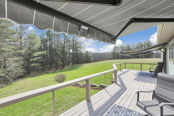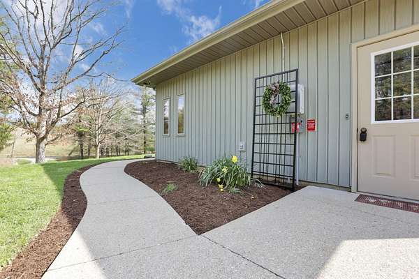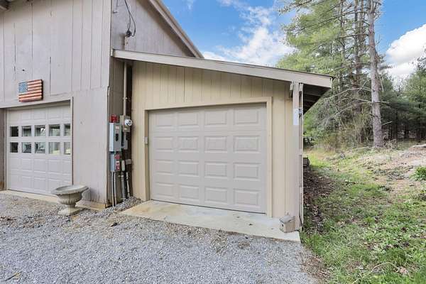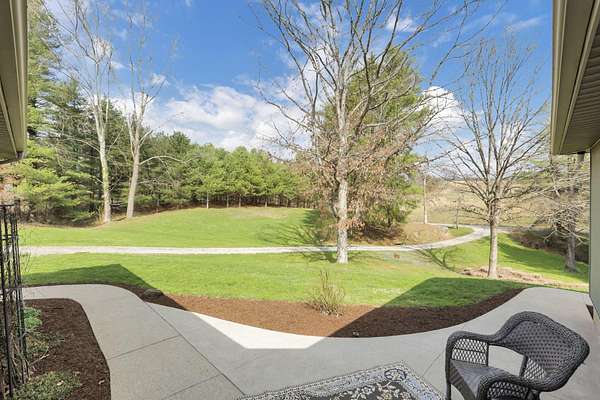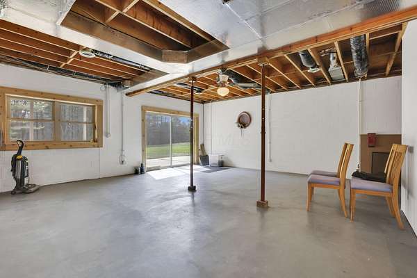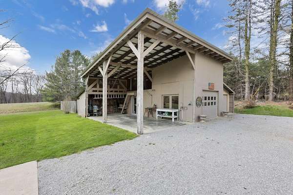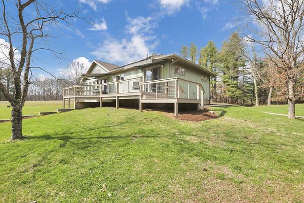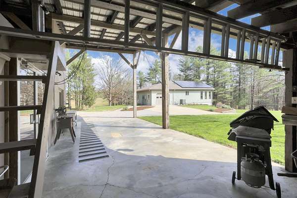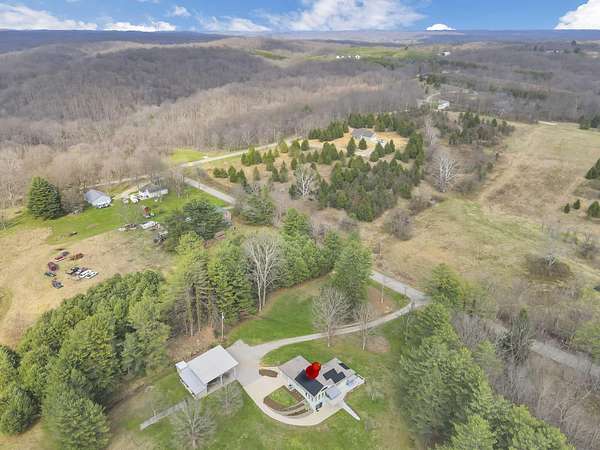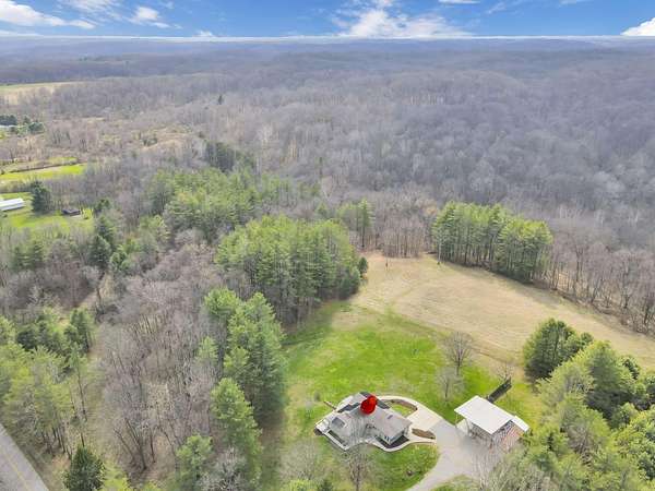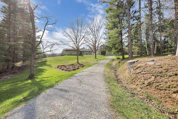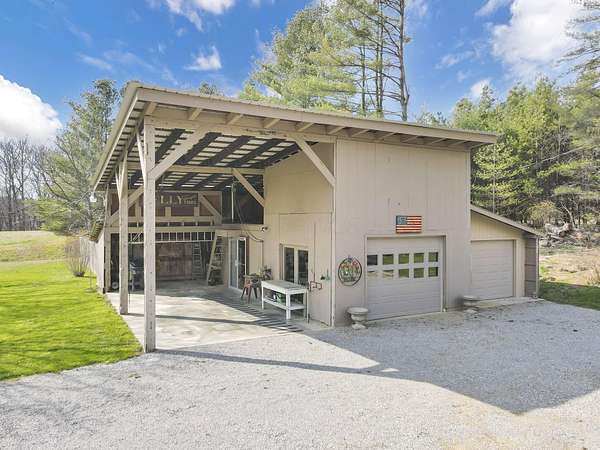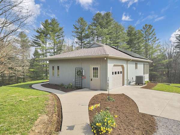 Welcome to this beautifully maintained rural home on over 12 acres in Athens, Ohio. Offering 2 bedrooms, 3 full baths, and approximately 1,399 square feet, this property combines comfort, functionality, and modern updates in a peaceful, private setting. Step inside to vaulted ceilings and large windows that fill the home with natural light while showcasing breathtaking views. The kitchen features stainless steel appliances, ample cabinet and counter space, and a dining area ideal for everyday living and entertaining. The primary suite offers a spacious layout with a private bath featuring a jetted soaking tub, a large walk-in closet, and direct access to the deck. A retractable awning creates a shaded outdoor space perfect for relaxing. Enjoy both an upper-level deck and a lower-level patio off the walkout basement, providing multiple areas to take in the scenery or host gatherings. The partially finished walkout basement offers tall ceilings, a full bath, and a kitchen setup, with over 1,000 square feet of additional space and potential for a second living area or guest suite. The attached one-car garage provides convenience, while the detached garage is a standout feature with a carport with overhead chain hoist, two enclosed bays, heat and water with a workshop space--ideal for hobbyists or additional storage. Located near Hocking Hills and the historic city of Athens, this home offers convenient access to outdoor recreation while maintaining a private, rural feel. Schedule your private showing today.