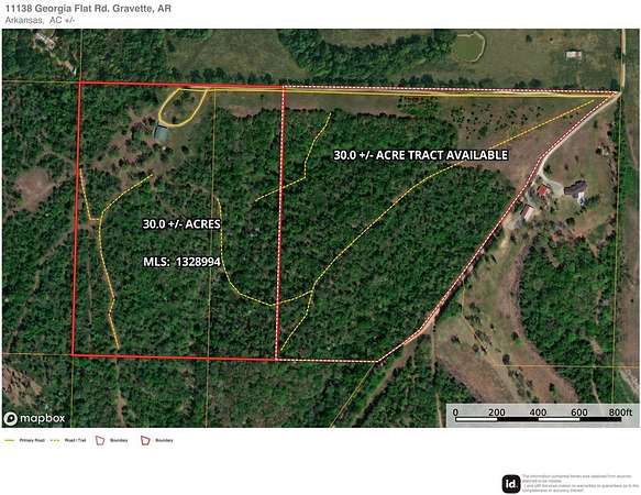 From Gravette, head west on Highway 72. Turn left on Georgia Flat Rd. Go approximately 3.0 miles and take a left at the powerlines to stay on Georgia Flat Rd. and go right at the split. Follow the signs to the property. Property approximately 3.5 miles off Highway 72.