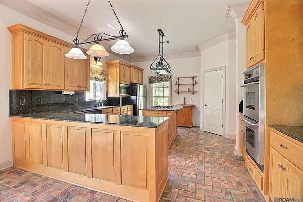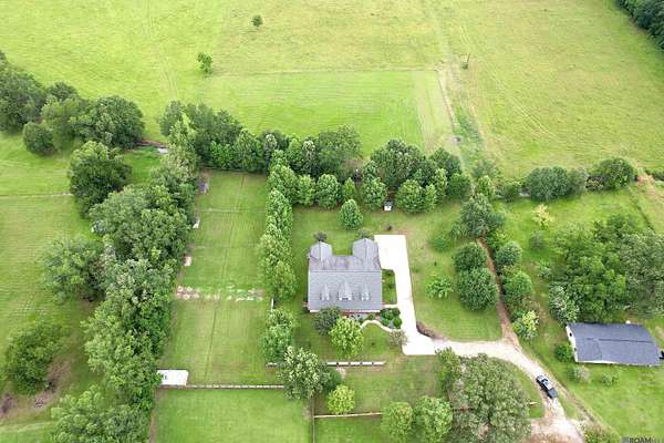 Nestled on 3.518 fully manicured acres, this beautifully crafted 3-bedroom, 3-bath Acadian-style brick home offers exceptional privacy just minutes from I-12 at Pumpkin Center, I-55, and Hammond. Built with top-quality construction, this retreat features an expansive 640 sq. ft. deep, covered concrete front porch with brick coping and steps--perfect for enjoying peaceful country views. The exterior boasts all low-maintenance finishes including full brick siding, aluminum-clad Marvin windows and doors, vinyl fascia and soffit, gutters, and a vinyl privacy fence with brick columns. Inside, solid nail-down wood flooring spans the living, dining, foyer, and halls, while brick floors enrich the kitchen, breakfast, guest bath, and laundry. The kitchen is a chef's dream with ash wood custom cabinetry, granite countertops, gas cooktop with down draft vent, double wall ovens, microwave, refrigerator, island, pantry, and abundant counter space. Spacious bedrooms include new carpet, walk-in closets, ceiling fans, and the master suite features a jetted soaker tub, custom-tiled walk-in shower, dual vanity, framed mirrors, and water closet. The living room offers built-in cabinetry, a gas fireplace, and French doors to the back porch. Additional highlights: Security system, triple crown molding, Pecan wood front door with storm glass, custom cabinetry throughout, 2 gas water heaters (one new), attic with 16-ft ceiling fully decked for storage, 2-car garage with vinyl siding interior, lean to storage area, dog house and multiple fenced areas for privacy, sprinkler system serviced by private well, city water, and located in Flood Zone X. Don't miss this rare opportunity--schedule your private showing today!