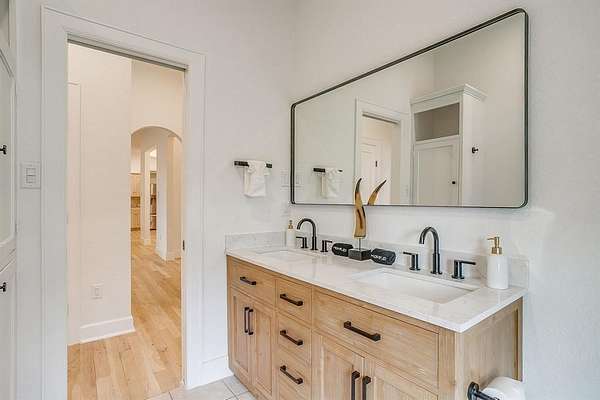 Nestled on 2 lush, tree-filled acres, this beautifully renovated home invites you to slow down and enjoy the space around you. A large front porch welcomes morning coffee and quiet moments, while the expansive back porch is ideal for evening sunsets, entertaining, or simply enjoying the privacy and serenity of your surroundings. The main residence features 3 spacious bedrooms and 2.5 baths, offering a thoughtful layout designed for both comfort and functionality.