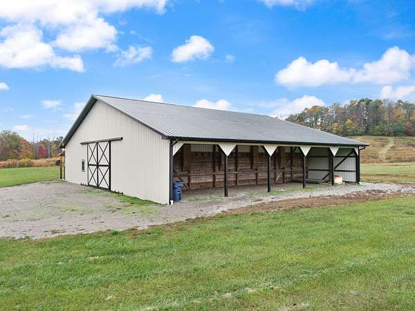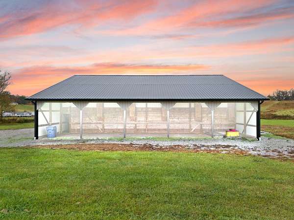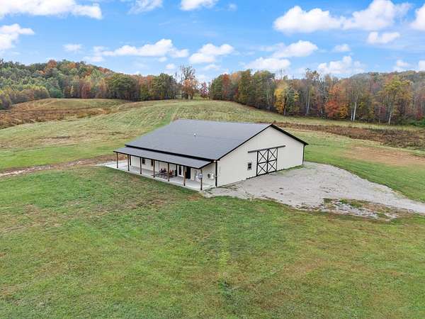 Welcome to 1114 Matt Baker Rd. London, KY. The property is fully fenced with almost 2,000 sf of road frontage with black plank fencing. Searching for the ideal perfect farm with a custom BARNDO & Horse property that is all fenced to ride now, in the Kentucky real estate market!?! Surrounded by trees for seclusion and privacy. This is it. - Bringing to your attention this property's distinctive qualities, which is one of the finest real estate possibilities for the equestrian at heart, distinguished farm business, or any endless possibility of which are now here. The existing barn was taken down to its foundation, and this 3,000-sf custom home has taken its place. This 3-bedroom, 2 bath home has two primary suites, two separate living spaces - one upstairs and one downstairs, and an amazing surveyed 61 acres. This home has new flooring, wood structure walls, plumbing, electric, windows, metal siding, 2 kitchens, 2 bathrooms, 3 bedrooms, walk in closets, all new appliances, tankless water heater, ductless heat and air systems - everything is new. Standing at the top ridge you can see a gorgeous mountain range in the distance - it would be the perfect location to live or entertain and build a venue headquarters cabin or tiny house. There are numerous locations on this property that would make fantastic multiple home sites.