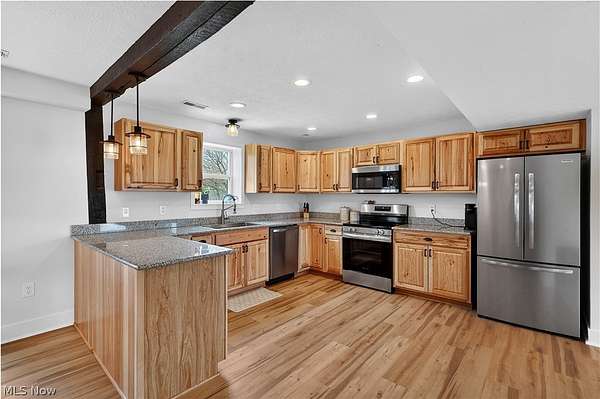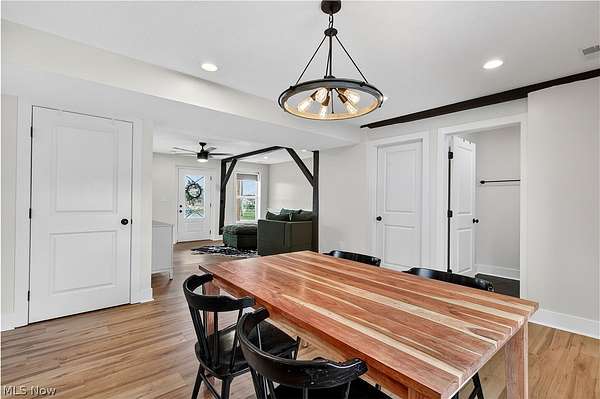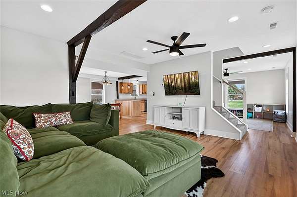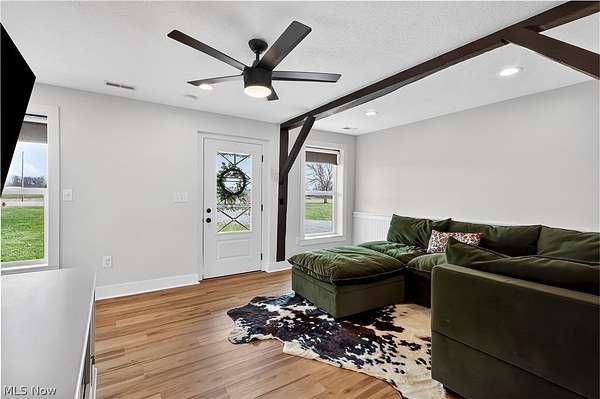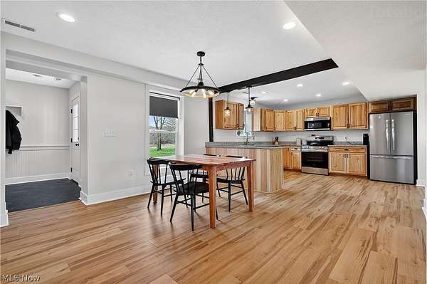 Charming 2-story home situated on 5 acres, offering a perfect blend of modern updates and original character. Features include 3 bedrooms and 2 full baths, including an owner's suite. Open floor plan with exposed wood beams that add warmth and preserve the home's original charm. Exterior amenities include a 2-car attached garage and a 24x30 pole building with concrete floor and electric-ideal for storage, hobbies, or a workshop. Enjoy both front and rear concrete patios, perfect for relaxing or entertaining. Plenty of outdoor space to roam, garden, or create your own mini farm setup. Conveniently located near Highland Schools while offering a peaceful country setting.