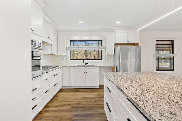 - Built-In Gas Range, Dishwasher, Refrigerator, Stainless Steel Appliance(s)