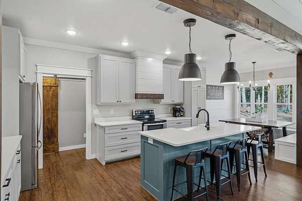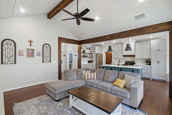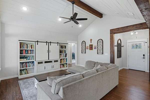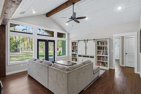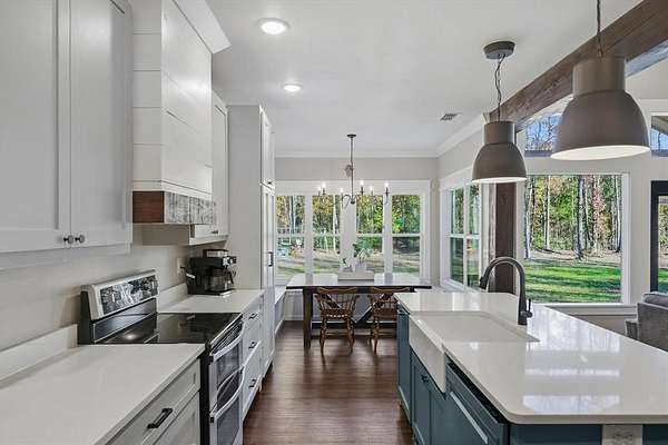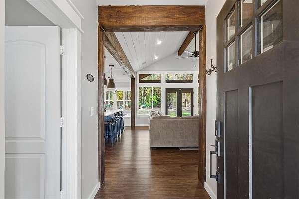 Tucked behind a gated entrance, this thoughtfully designed home sits on approximately 3 acres in highly sought-after Lindale ISD with high speed internet (1GIG) and is ideal for remote working or any other needs. Inside, the home feels warm and welcoming with wood finish-outs, vaulted ceilings, and an open layout that flows effortlessly for everyday living. The kitchen and dining area anchor the home, featuring custom built-in banquette seating, a space made for slow mornings, family meals, homework at the table, and gathering with the people you love. With 4 bedrooms, 2.5 bathrooms + an office, there's room to spread out while still feeling connected. Natural light fills the living spaces, and thoughtful details throughout make the home feel intentional and comfortable, never cookie-cutter and safety first with a storm shelter IN the garage. No running through rain in the dark to the storm shelter here! Outside, the land offers room to breathe, roam, and enjoy East Texas living. A 700-foot water well provides reliable water, while the chicken coop adds charm and function for those wanting a little taste of country life. The beautiful pipe fence frames the property and is ready for kids to play, dogs to run, or animals to graze. This is the needle in the haystack you've been searching for. Welcome home.