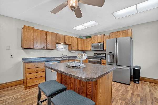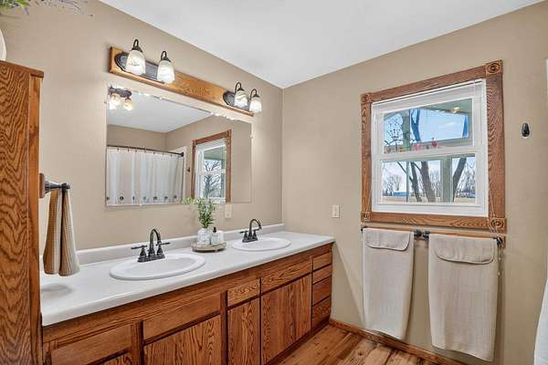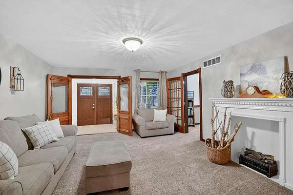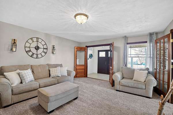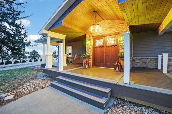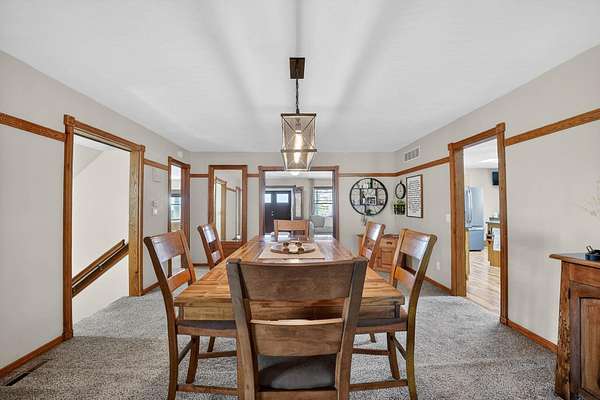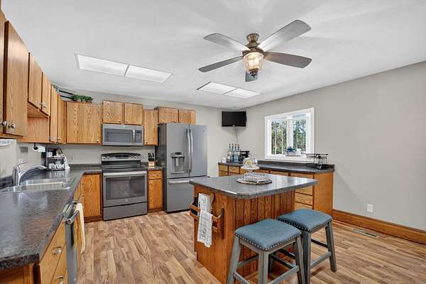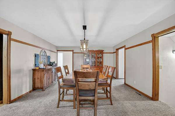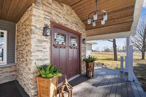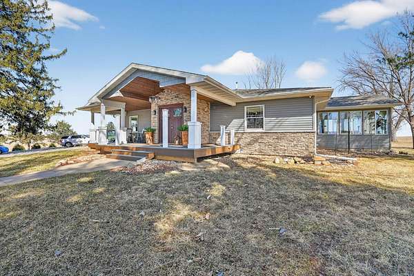 Stunning ranch home nestled on just over 2.5 acres of land on a hard surface road south of the Waterloo Crossroads area. Step inside to a spacious and thoughtfully designed main floor featuring a large kitchen with an island. Just off the kitchen, you'll find a convenient laundry room with washer and dryer, along with a half bath. The kitchen flows seamlessly into a generous dining area and an oversized living room with great storage, creating an inviting atmosphere. The main floor also includes a private primary suite complete with a walk-in closet and full bathroom. Two additional bedrooms, a newly remodeled bathroom, a cozy sitting room, and a dedicated office (or non-conforming fourth bedroom) provide flexibility for any lifestyle. Just off the living room, unwind in the beautiful sunroom filled with natural light and views of the surrounding acreage. Curb appeal shines with a grand front entry and welcoming porch, complemented by extensive exterior updates including new siding, stone accents, roof, and all new windows. Car enthusiasts, hobbyists, and those needing serious storage will appreciate the unmatched garage and outbuilding space. The home features five attached garage stalls, including a newly added three-stall garage with spray foam insulation and heated floor readiness, just add a water heater. In addition, there are two more attached stalls at the rear, an oversized two-stall detached garage, and a massive 40x64 pole building. Major updates completed since 2020 include a new furnace and AC, on-demand water heater, water softener, spray-foamed basement, and updated bathrooms and bedrooms giving peace of mind and modern efficiency. With incredible space inside and out, extensive updates, and unbeatable storage, this property offers endless possibilities for living, working, and playing all in one place.