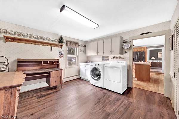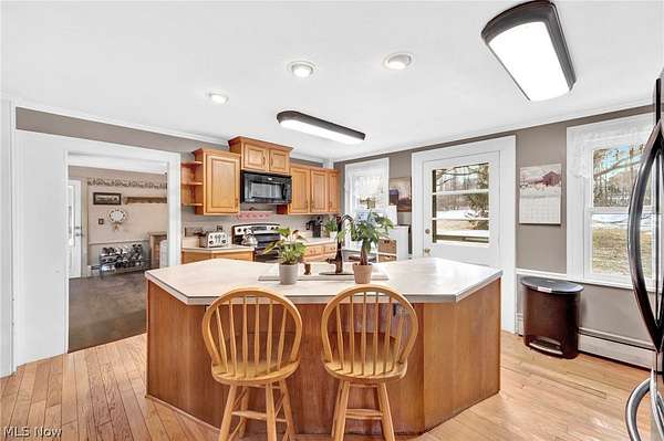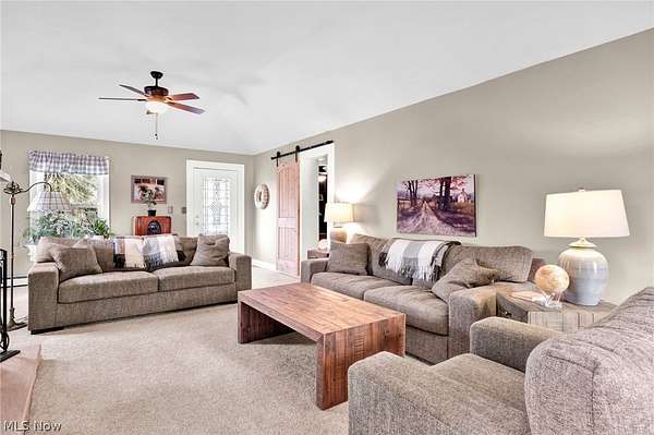 Welcome to 11146 Girdled Road in Concord Township, a warm and inviting 3-bedroom, 2-bath home set on a beautiful property with a pond and a large barn offering two-car capacity, perfect for hobbies, storage, or workshop space. Step inside to a welcoming family room centered around a dramatic stone fireplace, and a living room that also features a fireplace, offering multiple gathering spaces for everyday living or entertaining. The kitchen and dining area are seamlessly connected in an open layout, featuring a large island with bar seating and room for a dining table. A breezeway extends the living space year-round and opens to the patio through sliding glass doors, perfect for enjoying the surrounding views. All three bedrooms are located upstairs, where you'll find fresh paint and new carpeting, creating a bright and comfortable retreat. The generously sized primary bedroom, with the third fireplace, provides plenty of space to unwind, while the additional bedrooms are cozy and finished with plush carpet. The upstairs bath features bronze fixtures and a stand-up shower, while the first-floor bath is filled with natural light and highlighted by a freestanding soaking tub for a relaxing, spa-like feel. The mudroom/laundry room has new flooring (2025), and provides excellent potential for added storage and built-ins. Major updates include a new hot water tank (2025), gutters with guards (2020), completing this comfortable and versatile home.