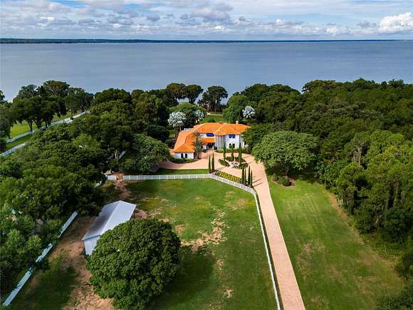 LAST OF OUR 7 LAKE HARRIS LOTS FOR SALE ONCE-IN-A-LIFETIME LUXURY ESTATE. Elevated, expansive lakefront views on the Harris Chain of Lakes. No HOA, this property includes equestrian features and direct boating access to one of Central Florida's most sought-after lake chains. A rare gem that checks every box for the discerning buyer, offering unmatched opportunities hard to replicate elsewhere in the country. PRIME LAKEFRONT: Situated on 5.32 acres directly on Lake Harris, one of Florida's largest lakes, with over 200 feet of pristine lake frontage. Enjoy private, serene living with breathtaking westward sunset views from 100-foot elevations, creating an idyllic backdrop for luxury living. EXPANSIVE LUXURY LIVING: The 6,562 sq. ft. Mediterranean-style estate offers 5 bedrooms and 5 bathrooms, recently upgraded with high-end finishes. It features an authentic Venezuelan clay tile roof and a grand fountain. Accessed via a driveway with newly-installed stone pavers and a gated entrance, the property is fully enclosed for privacy and security. EQUESTRIAN FACILITIES: Equipped with a custom-built three-stall barn, air-conditioned tack room, large fenced pasture. BOATER'S PARADISE: A private dock with new electrical wiring, decking, and a boat lift provides direct access to Lake Harris and its chain of seven lakes. These interconnected waterways span 75,000 acres, renowned for natural beauty and boating. Charming lakeside restaurants and cafes are perfect dining spots amidst stunning surroundings. OUTDOOR OASIS: A resurfaced commercial-sized pool, built-in spa with therapeutic jets, and a $250,000 curved staircase set the stage for large events or intimate gatherings. BEAUTIFUL LANDSCAPING: The estate is enclosed with vinyl fencing, featuring a low-maintenance, lush setting with a full-coverage irrigation system. The grounds include over 30 exotic fruit trees, enhancing natural beauty and offering a private orchard experience. RECENT UPGRADES: New HVAC system, whole-house water filtration, remodeled kitchen, energy-efficient LED lighting, and upgraded electrical panel ensure modern convenience and efficiency. ENTERTAINMENT: The backyard features a koi pond, waterfalls, fire pit, gazebo, multiple patios accommodating hundreds of guests--perfect for outdoor enthusiasts. EXPANSION POTENTIAL: Adjacent listing for sale offers an additional 15.9 acres of undeveloped, wooded property with a AG timber exemption for low taxes. The land, comprising five 5+ acre lots, offers over 600' feet of lake frontage eligible for rezoning, providing immense development options: build a guest house, tennis courts, or a private family compound. EXCEPTIONAL LOCATION: Ideally located in Central Florida, offering quick access to the Florida Turnpike, Orlando, Mount Dora's boutiques, and Ocala. Golf enthusiasts will enjoy the nearby Mission Inn Resort, while private jet owners benefit from Leesburg International Airport, just 10 miles away. The Villages, with shopping, dining, and entertainment, is also close. For fishing enthusiasts, Homosassa on the west coast, known for Gulf access, flats fishing, and scalloping, is just a 75-min drive. Easy access to Port Canaveral's cruise terminals, airports, theme parks, and Atlantic beaches blends tranquility with vibrant Central Florida living. SELLER FINANCING AVAILABLE. Seller is offering up to $75,000 in buyer credits at closing for contracts that successfully close on or before 12/31/2025, subject to lender approval.