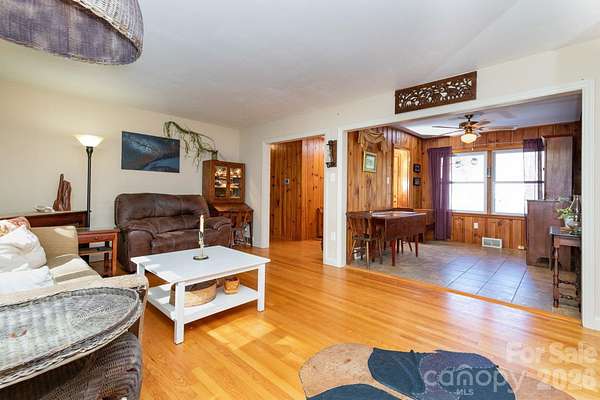 Discover this peaceful mountain retreat in Swannanoa that perfectly blends natural beauty, flexible living spaces, and modern comfort. Set against sweeping views of the Blue Ridge Mountains, this well-maintained home invites you to experience the best of Western North Carolina living. The main level offers an airy, open-concept design filled with sunlight and mountain views. The kitchen connects effortlessly with the dining and living areas, creating a comfortable flow for everyday life or entertaining friends. A bright sunroom just off the kitchen-with propane fireplace and its own exterior access-provides an inviting space to sip morning coffee, enjoy the scenery, or step directly outdoors. The finished lower level offers exceptional flexibility, featuring a kitchenette, living room with woodstove, bedroom, office/bonus room, full bathroom and private entrance - can be used to extend the living area for single family, or for guests or rental use. Whether you envision a separate living area for family members, a creative studio, or income-producing space, this level adapts easily to your needs. Outside, the property feels like a secluded haven. Behind the home, wooded mountainside acreage stretches upward, blending into nearby hiking trails and wild spaces. Across the quiet country road, a mountain creek provides the calming sound of running water. Expansive garden plots and open areas with fruit trees invite you to cultivate, relax, and connect with nature-perfect for those who love gardening, homesteading, or simply the slower rhythm of mountain life. Nestled in the scenic Bee Tree Valley, this home offers tranquility with easy access to Swannanoa, Black Mountain, and Asheville. Whether you're seeking a full-time residence, vacation getaway, or investment property, 1115 Bee Tree Road captures the heart of mountain living-peaceful, versatile, and endlessly inviting.
