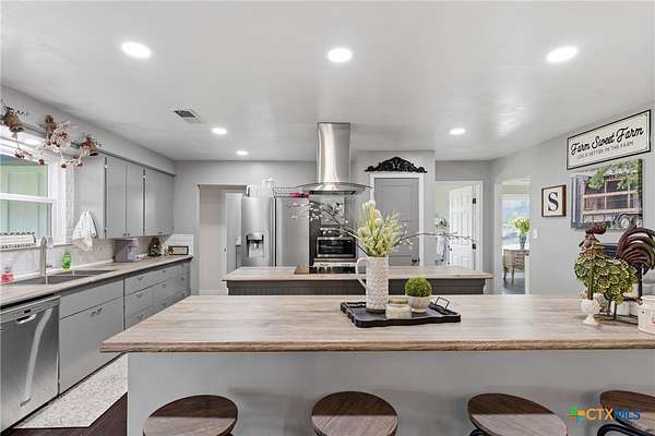 Welcome to your own piece of Texas countryside just outside of Lometa-where wide-open skies, peaceful views, and the charm of farmhouse living come together on 6.41 beautiful acres. This spacious 4-bedroom, 3-bath farmhouse offers approximately 2,995 square feet of comfortable living space designed for gathering, relaxing, and enjoying the rhythm of country life. From the moment you arrive, the inviting setting and expansive property make it clear this is more than a home-it's a place to build memories. Inside, the heart of the home is the kitchen, where a large island creates the perfect space for morning coffee, family meals, or conversations that stretch late into the evening. The open layout provides multiple living areas and generously sized bedrooms for comfort and functionality. Crown moulding adds warmth and character, while new windows fill the home with natural light and showcase peaceful countryside views. These windows also include a replacement warranty for added peace of mind. Step outside and experience the beauty of country living. The fully fenced property features a picturesque pond-perfect for quiet mornings, fishing, or watching colorful Texas sunsets reflect across the water. The land is dotted with more than ten mature pecan trees, including one estimated to be over 100 years old. The peaceful setting also makes it easy to enjoy watching native Texas wildlife. An old cabin on the property offers great potential and could be transformed into an outdoor entertainment area, workshop, guest retreat, or hobby space. Additional features include a metal roof, two-car garage, two-car carport, and a security system. Several furnishings and useful items convey with the sale, including five mounted TVs, a sectional sofa, rugs, end tables, a coffee table, master bedroom furniture (minus mattress), refrigerator, and a riding lawn mower-making it easy to settle in and start enjoying your new home right away.