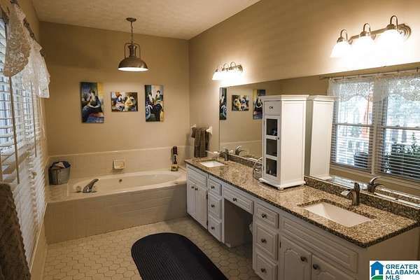 - Dressing Room, Garden Tub, Linen Closet, Separate Shower, Separate Vanities, Shared Bath, Sitting Area in Master, Tub/Shower Combo, Walk-In Closets
