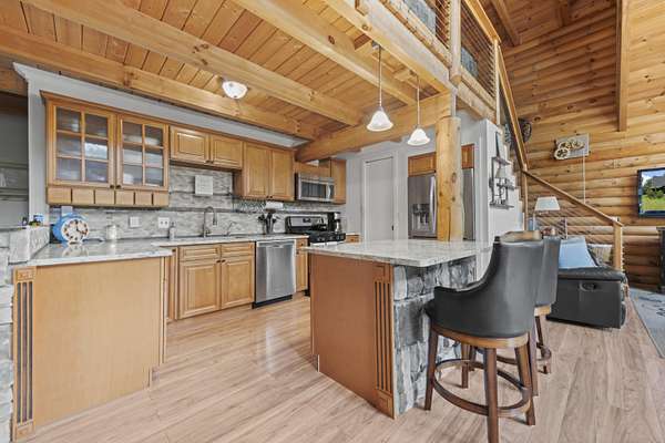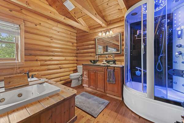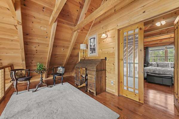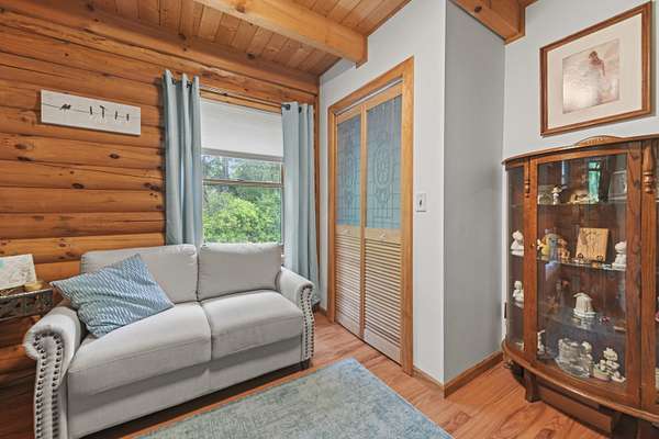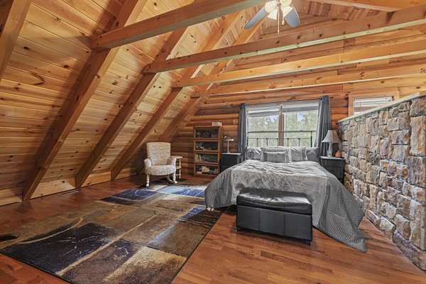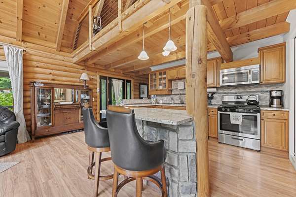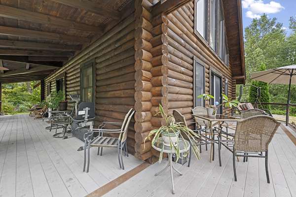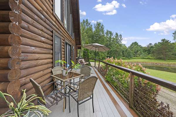 Welcome to your perfect up-north getaway! This charming 3 bed, 2 bath log cabin sits on 7 private, wooded acres and has everything you need to relax, entertain, and enjoy nature in style. Property Highlights: Spacious primary bedroom retreat with peaceful views Fully finished basement featuring a second full kitchen, Murphy bed, cozy lounge area, and bar - ideal for guests or in-law living Heated workshop for projects, hobbies, or home business use Your very own private pond - perfect for fishing, kayaking, or just unwinding Wraparound deck to soak in the scenery from every angle Total of 1,875 sq ft of warm, inviting living space with rustic wood finishes throughout.