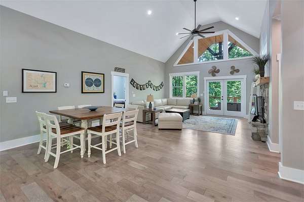 RARE FIND on Lake Hartwell - Waterfront Living on Over 4 Acres! Discover an exceptional Lake Hartwell waterfront home offering privacy, space, and unbeatable lake access-all within a gated subdivision. Set on over 4 acres with a gentle slope to deep water and close Corps line, this property includes a covered slip dock already in place. Inside, the home is designed for comfort and entertaining. The primary bedroom on the main level anchors the open-concept layout, where the kitchen, dining, and living areas flow seamlessly around a stunning stone fireplace. The walkout finished basement expands your living options with a bonus kitchen and bonus laundry, perfect for guests, multi-generational living, or hosting game-day weekends. Step outside to enjoy expansive waterfront living with a large lakeside deck-partially covered for year-round enjoyment-and a lakeside patio featuring an outdoor shower and fire pit. Whether hosting friends or enjoying quiet evenings by the water, this home delivers plenty of room to entertain both indoors and out. Ideally located by both water and land, you're just minutes to I-85, Clemson, and only 40 minutes to Greenville. This is a truly rare opportunity to own a premier Lake Hartwell property-privacy, convenience, and waterfront lifestyle all in one.