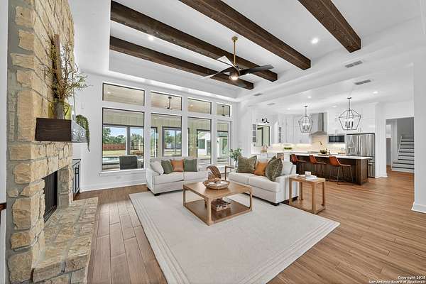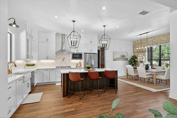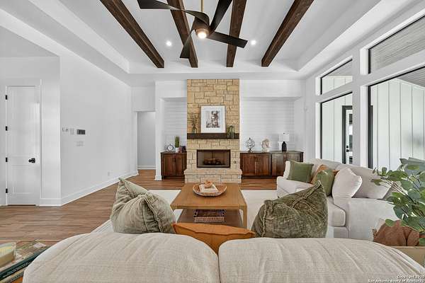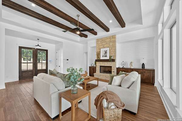 MOTIVATED SELLERS!!! This lovely Farmhouse Retreat on 1.5+ Acres is perfect for enjoying quiet Hill country living yet still minutes to city amenities. Also... No HOA! This home has 5-bedrooms and features two guest quarters, perfect for a mother-in-law suite or multi-generational living. Located on a beautifully flat cul-de-sac lot, this property offers both privacy and convenience. It's close to the city yet tucked away in a peaceful Hill Country setting. Enjoy the gorgeous pool with 600 sqft pool/guest house for summer entertainment, an electric gate for added security, and plenty of space to relax. With no HOA restrictions, you'll have the freedom to make this property your own. This is Hill Country living at its finest. Additional square footage was added to property that is not reflected on listing. TV'S AND MEDIA ROOM FURNITURE CONVEY***DOLL HOUSE DOES NOT CONEY AND ONE STORAGE BUILDING DOES NOT CONVEY