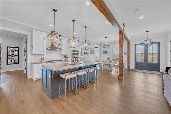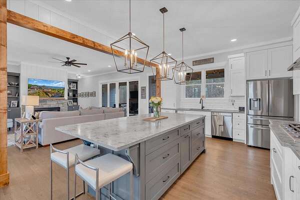 This exquisite Martin Construction custom home in Jasper Highlands offers ultimate luxury mountain living. The stunning 4-bedroom, 3.5-bath residence sits on a generous 1.5-acre lot backing to protected community land trust property, ensuring permanent privacy, serene wooded views, and abundant wildlife--no neighbors behind, just peaceful conservation land.Meticulously crafted with premium finishes and superior quality, this masterpiece features an inviting open-concept layout with beautiful Red Oak hardwood floors throughout the main living areas, an elegant chef's kitchen with top-tier appliances and custom cabinetry, a luxurious primary suite, generous secondary bedrooms, and versatile spaces flowing seamlessly indoors and out. The fourth bedroom is a full upstairs suite with custom built bunkbeds--perfect for guests, kids, or multi-generational living. The attached garage includes a 2-car bay plus dedicated utility bay for vehicles, golf cart/ATV, workshop, or storage. Outdoor living shines with an oversized front porch offering breathtaking bluff sunset views over mountains and valleys, plus an oversized screened back porch with outdoor kitchen and wood-burning fireplace--ideal for morning coffee, year-round barbecues, fireside relaxation, or tranquil unwinding.Jasper Highlands residents enjoy resort-style amenities minutes away: Top of the Rock Restaurant & Brewery with chef-inspired dining, craft beers, and panoramic Tennessee River Gorge views; Fiery Gizzard Pizzeria; 24/7 Wellness Center, private pools; miles of hiking trails like Huff-n-Puff; Inspiration Park with tennis, pickleball, playground, dog park, horseshoes, bocce, and the two-story Gazebodacious pavilion; plus on-site fire department, event venues, parks, and vibrant village hub.Easy proximity to Lake Nickajack and the Tennessee River provides abundant water sports. 30 min to downtown Chattanooga. Dont miss this opportunity.