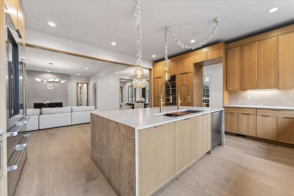 Inside, the home has been thoughtfully reimagined for the way people truly live. Clean architectural lines, custom cabinetry, refined trim work, and designer lighting create a polished yet inviting atmosphere that feels elevated without being untouchable.