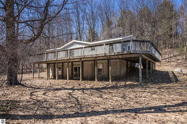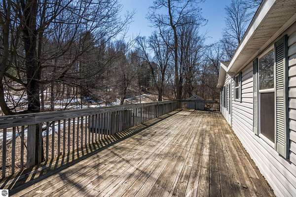 Est $2,289/mo4.3 acres on Old Mission Peninsula with a 3BR+2BA ranch on a full walk-out lower level and 880 square foot deck for seasonal living. Built in 2002 this home has a great floor plan with 3BR+2BA on the main level, an eat-in kitchen, and an additional BR or office in the lower level that is also plumbed for an additional bath. Natural gas, well & septic + 2 sheds. This fixer upper has loads of potential and is being sold as-is.