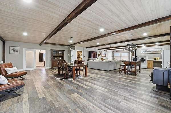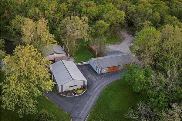 Extraordinary 15-acre, three-structure estate in Kansas City, Kansas offering over 8,000 square feet of combined living and functional space, presenting a rare and highly flexible opportunity for private retreat living, multigenerational use, event-style ownership, recreational estate, hobby compound, or a truly unique live/work property. Tucked into a secluded, wooded setting, this one-of-a-kind property feels like a destination of its own-yet remains minutes from major Kansas City attractions. The expansive acreage, multiple structures, and indoor and outdoor gathering areas create a level of space, privacy, and versatility rarely found near Village West. The estate is marketed as a 5-bedroom, 1.5-bath property and includes four non-conforming bedrooms, offering flexible options for guest rooms, bunk rooms, home offices, wellness spaces, studios, or additional sleeping quarters. The three-structure layout provides natural separation and adaptability for a variety of lifestyle needs. Conveniently located just minutes from The Legends, Sporting KC, Kansas Speedway, Hollywood Casino, and Legends Field, this property offers quick access to shopping, dining, sports, and entertainment-while still delivering the feel of a peaceful countryside retreat. For buyers seeking land, flexibility, multiple structures, retreat potential, or a one-of-a-kind estate near Village West, this is an exceptional opportunity.