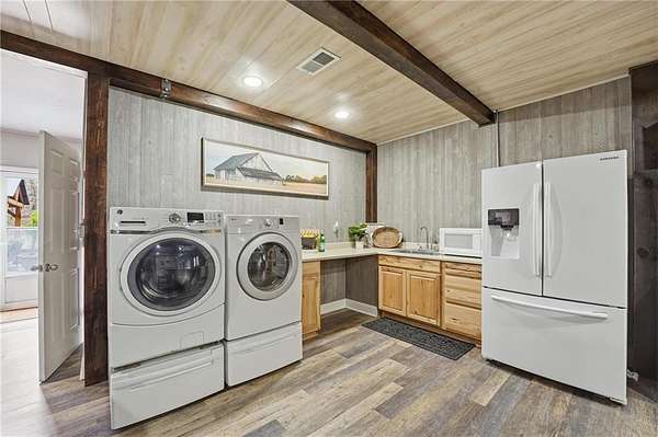 - Dishwasher, Dryer, Electric Range, Microwave, Refrigerator, Washer