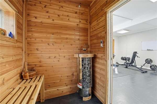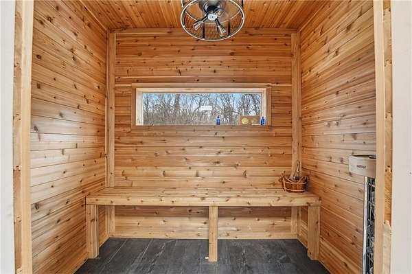 - Ceiling Fan(s), Kitchen Island, Sauna