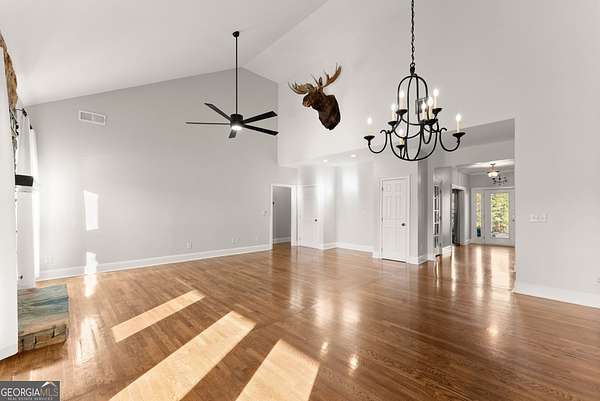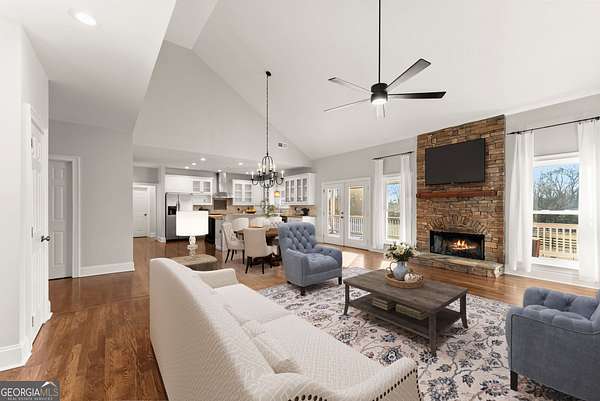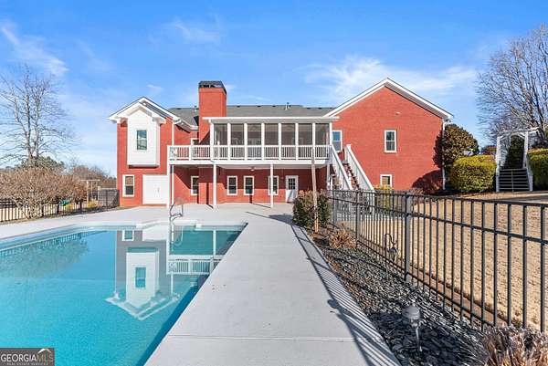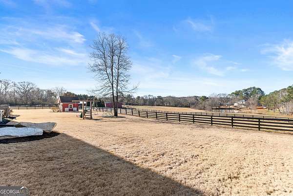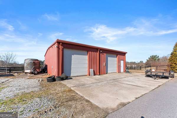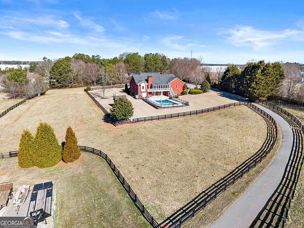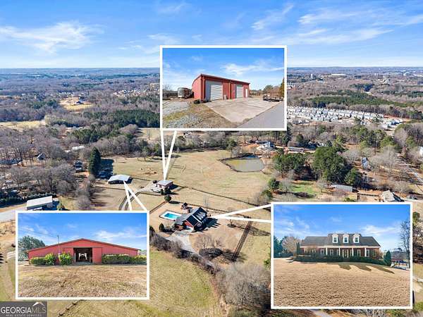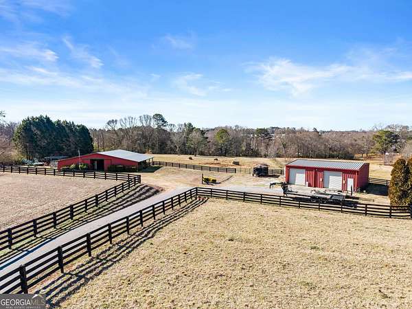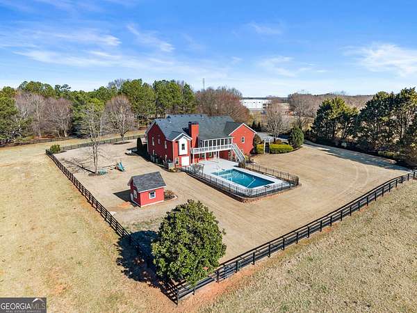Experience refined country living at its finest with this exceptional Gentleman's Horse Farm nestled on 12.78 picturesque acres in desirable Jackson County. This private estate offers over 5,000 square feet of thoughtfully designed living space featuring 6 bedrooms and 3.5 baths. Expandable unfinished living area on upper level with spray foam insulation. The property is fully fenced and beautifully divided into three separate pastures, ideal for equestrian enthusiasts. A shared pond enhances the serene setting, while the 3+ stall barn and riding arena provide the perfect setup for horses. Additional improvements include a spacious two-bay workshop and charming potting shed. Inside, you'll find fresh, brand-new paint throughout and an expansive owner's suite overlooking the pool, barns, and rolling pastures - a true retreat. The fully finished basement offers a second kitchen and generous living area, ideal for multigenerational living, guests, or entertaining. Step outside to your private backyard oasis complete with a large in-ground pool, blending luxury and functionality with the peaceful beauty of farm life. This rare equestrian estate delivers space, privacy, and upscale comfort - all within sought-after Jackson County. Close to I85 and Downtown Braselton, and Chateau Elan.
