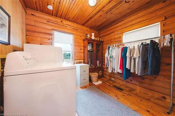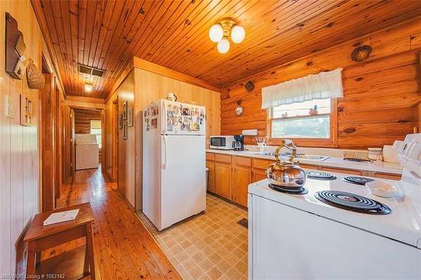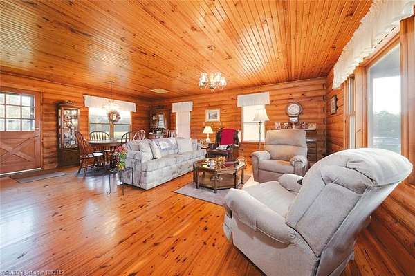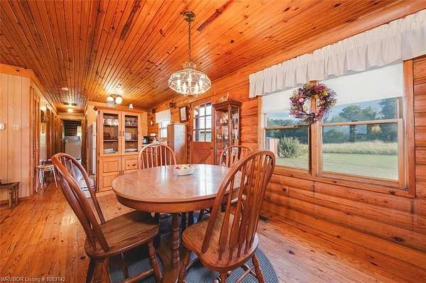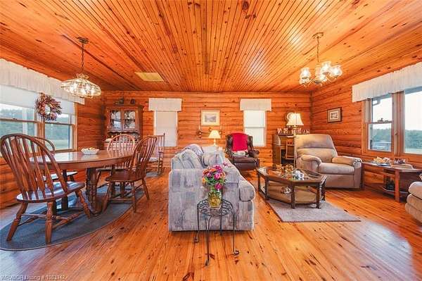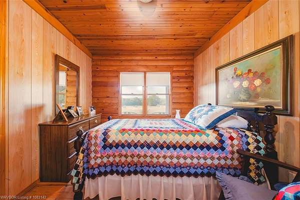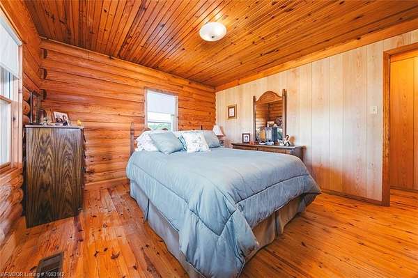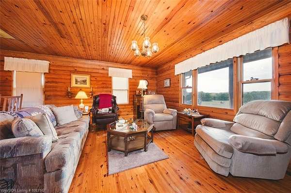 Escape to your own private paradise with his rustic 2 bedroom, 1 bath log cabin nestled on a sprawling 100 acres of lush pasture land. This serene retreat boasts mature shade trees that creates a picturesque landscape. perfect for outdoor gatherings and relaxation.