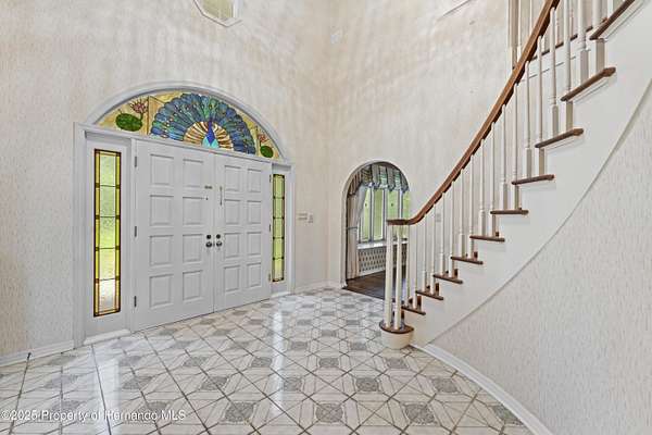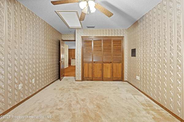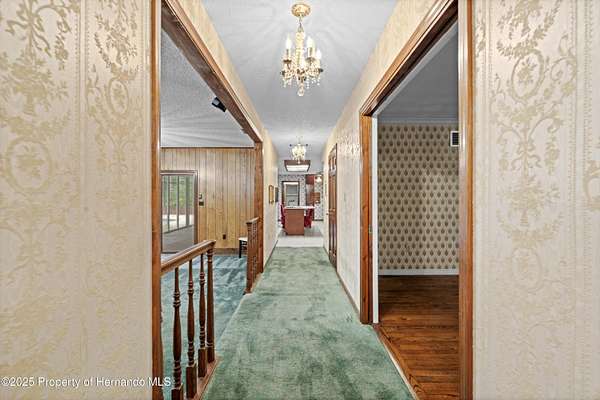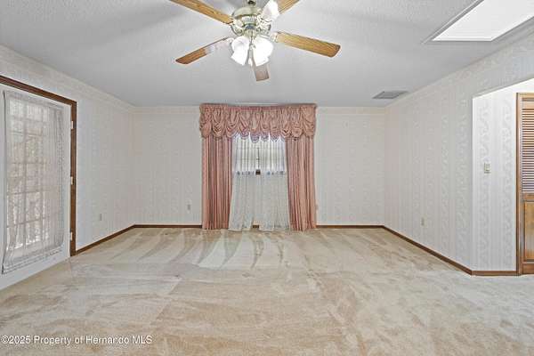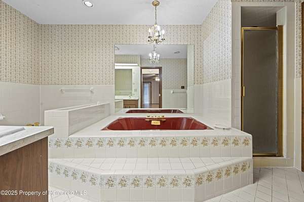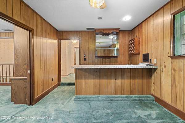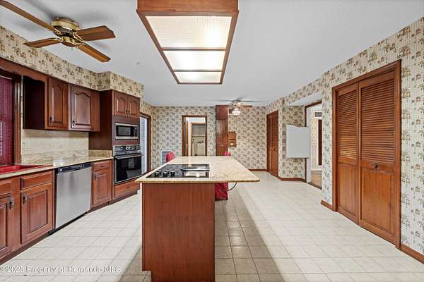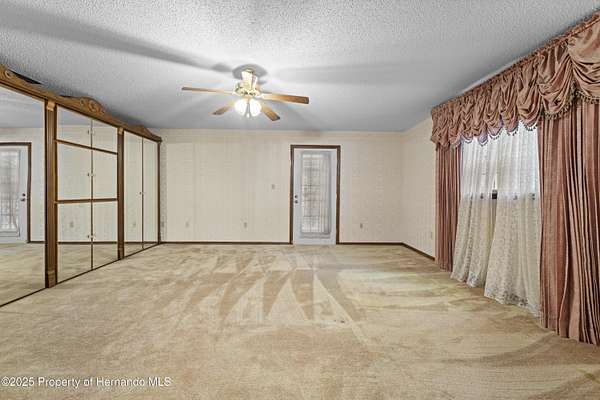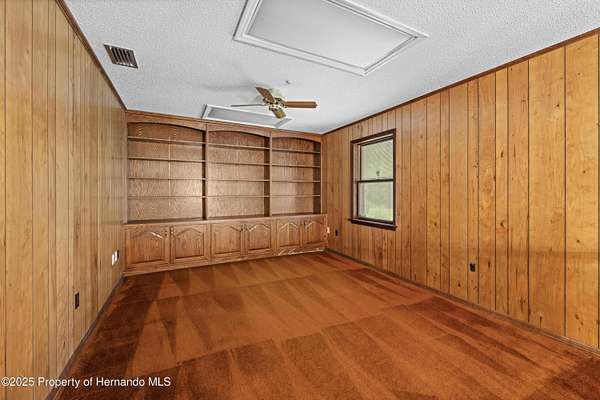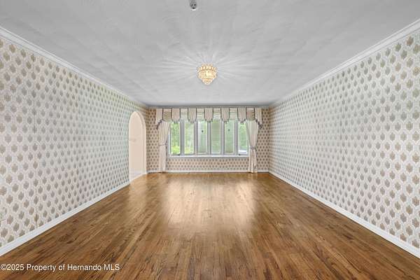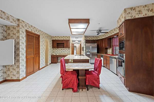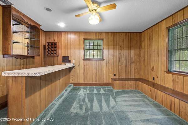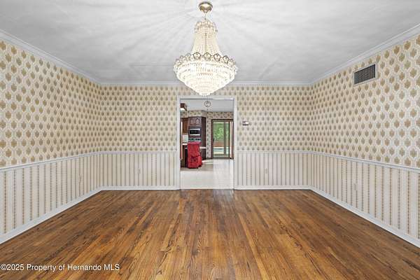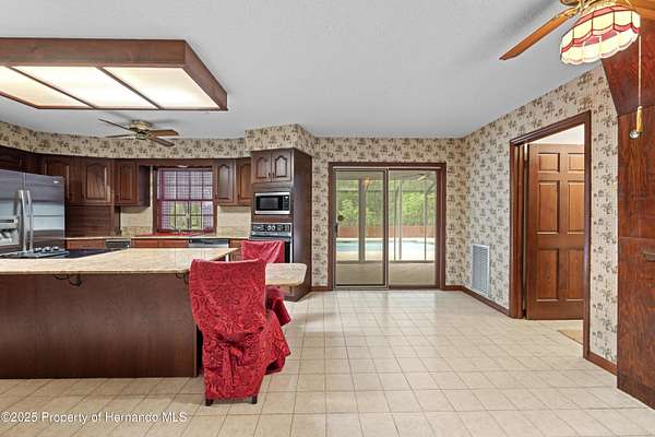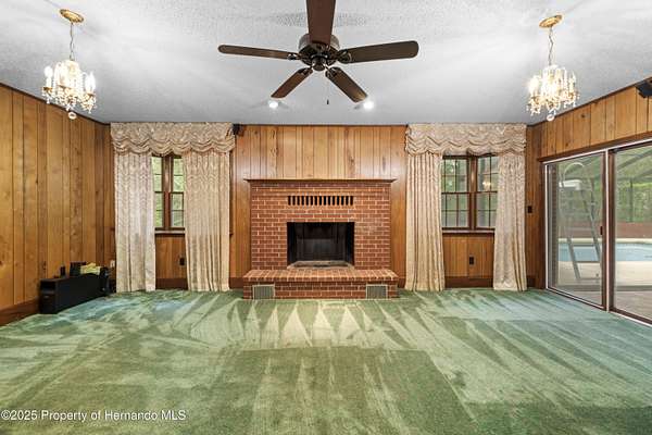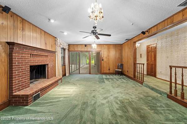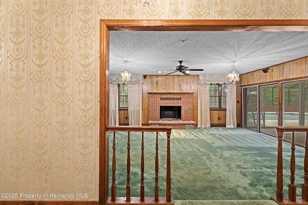 Listed at appraised value!!! Step into timeless elegance with this custom-built British Colonial masterpiece, offering over 4,300 sq. ft. of air-conditioned living space plus an enclosed sunroom, spacious patio, and an oversized 2-car garage with additional storage. Set on 2.5 beautifully landscaped acres filled with fruit trees and flowering plants, this home offers space, privacy, and charm in equal measure. Built in 1983 by renowned builder Don Richards, the home features a solid brick exterior, a deep foundation, and unique architectural elements throughout. Inside, you'll find 5 bedrooms (including a spacious primary suite with private balcony), 4 full bathrooms, and thoughtful details that elevate every room-from 24-karat gold-plated fixtures to custom cut-glass accents framing the entryway. Enter through the tiled foyer with its soaring ceiling and arched doorways. The kitchen has been upgraded with granite counters and flows into a large laundry room and corridor. The living and dining rooms feature real polished wood floors, oversized bow windows, and elegant touches like a salon door and chandelier lighting. Relax in the sunken den, complete with rich wood paneling, a surround sound system, and a brick wood-burning fireplace. Adjacent, the bar/rec room boasts a tiled counter, wood paneling, and built-in benches with hidden storage. A cozy guest bedroom offers privacy in its own quiet corner of the home. Upstairs, the primary suite includes a carved wooden wardrobe, TV nook, and spacious bathroom with double sinks, dressing area, and balcony views over the backyard and neighboring farm. There are 3 additional generously-sized bedrooms, a study/library with built-ins, two smaller rooms perfect for hobbies or homework, and updated bathrooms with European bidets and dual sinks. Outside, enjoy your own private pool with a slide, electric heater, and an enclosed sunroom with lockable sliders and garden views. The home is equipped with 3-zone A/C, brand new water heater (2025), updated plumbing (2024-2025), and a durable roof in good condition. Additional features include: -Wired for alarm & intercom -Pool heater -Custom chandeliers (1 large, 7 small) -Attic storage -Colonial-style curved staircase -Iron security doors -Multi-use prayer room or pantry with built-in shelving This property is an exceptional blend of character, comfort, and craftsmanship. Don't miss this rare opportunity to own a true Brooksville gem!