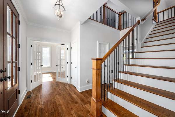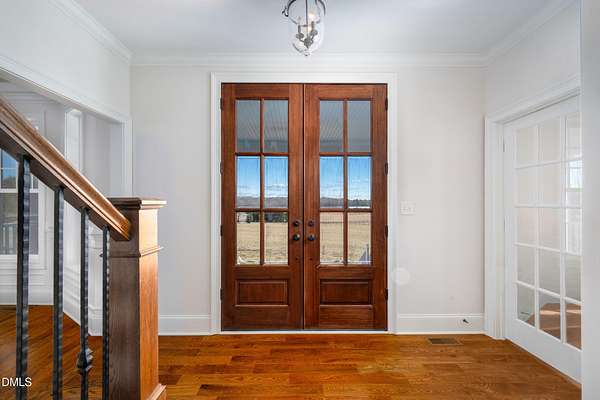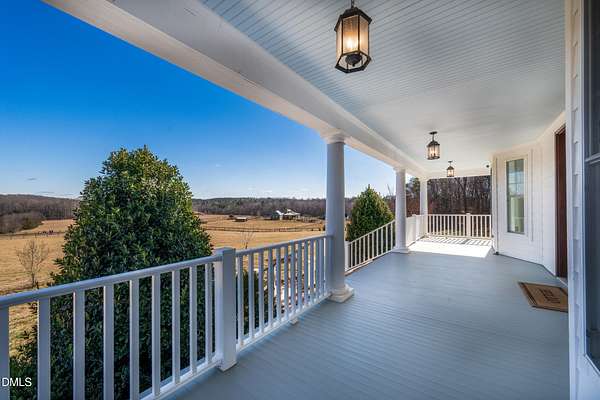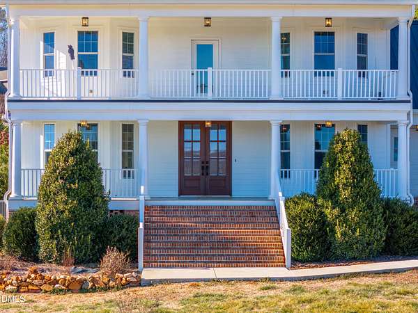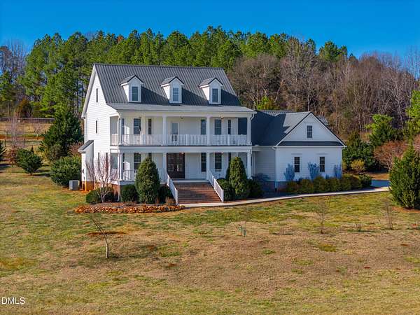 Picturesque Southern Plantation-style home set on 7.134 beautiful acres in Pittsboro where stunning sunrises and glowing sunsets can be enjoyed from the second-floor walk-out balcony. Bring the horses to this manicured pasture that is almost completely fenced. 4-bedrooms, 3.5-bath home that has been recently refreshed with new paint and beautifully refinished hardwood floors as well as new carpeting in the secondary bedrooms. Inside, you'll find flexible living spaces including a dedicated office on the main floor. Great flex spaces too perfect for remote work, hobbies, or guests. Metal Roof and fiber-cement siding. Outside is a charming 20*40 wired charming red barn with overhangs on a concrete slab provides endless possibilities for horses, woodworking, gardening, or homesteading. A strong 30-GPM well supports your outdoor and household needs with ease. Randolph Fiber internet service. Peacefully tucked away--yet still conveniently located--you'll be surrounded by local agribusiness charm, including orchards, wineries, seasonal attractions, and more. With convenient access to Highways 64 and 421, this property blends peaceful country living with accessibility--an ideal retreat offering space, beauty, and versatility.