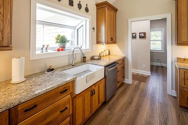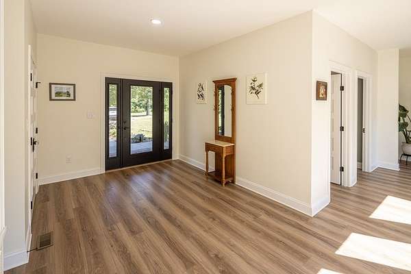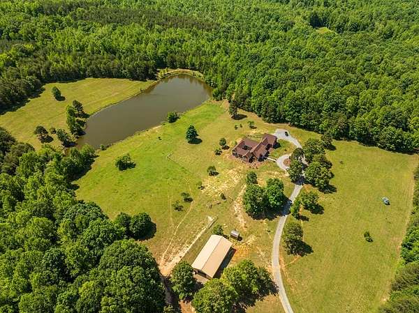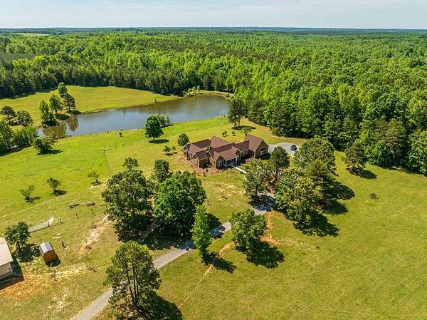 Unique owner designed quality built with many wonderful features. Gorgeous foyer, vaulted ceilings, wide hallways, large primary suite with propane fireplace for added comfort that leads to a charming breezeway adding additional outdoor living space with beautiful view of 3+-ac pond & pastures with another propane fireplace. Breezeway leads into an open spacious family room w/propane fireplace dining & large kitchen that features wide chestnut cabinets, large island, 2 sinks & beautiful views from windows. 62 acres fenced, 3 pastures, barn & 30x60 workshop w/ electricity & water. Gated entrance, secluded. riding trails, large pond for fishing & relaxation.