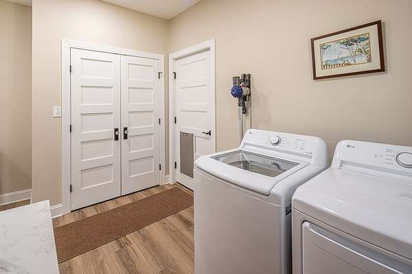 - 1 st Floor Bedroom, 1 st Floor Laundry, 1 st Floor Primary Bedroom, Ceiling Fan, Dining Room, Electric Dryer Hook-Up, Garage Door Opener, Great Room, Smoke Detector, Utility/Laundry Room, Vaulted Ceilings, Washer Hookup