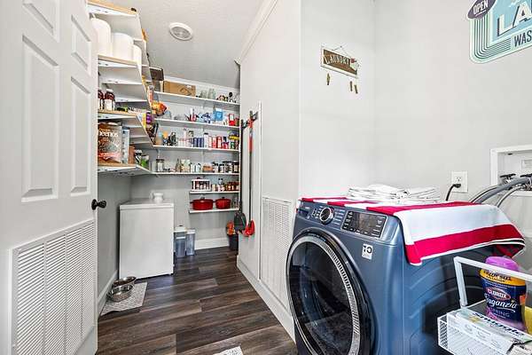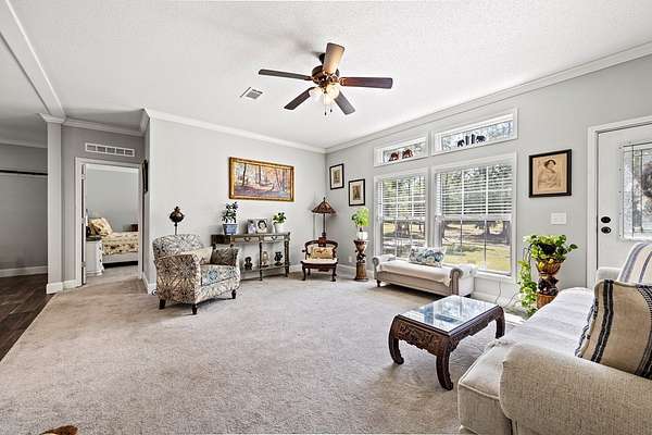 - Ceiling Fans, Crown Molding, Family Room, Fireplace, Gas Range, Kitchen Island, Living Room, Microwave, Open Floor Plan, Pantry, Smoke Detector, Split Floor Plan, w/ Hookups