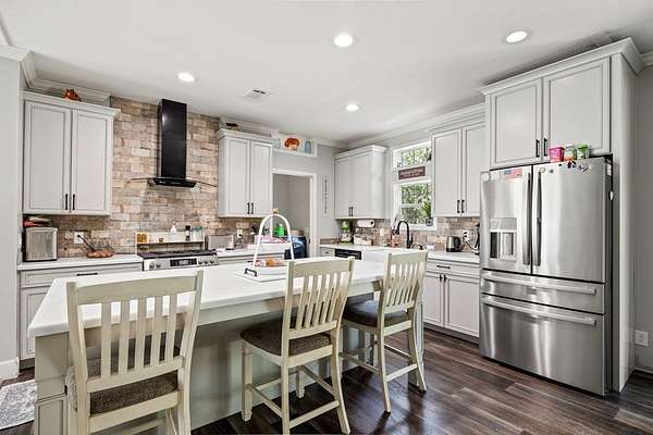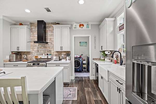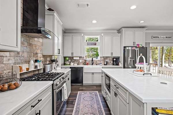Look no more! This 5 BDRM/ 3 BA home 2136sf on 10 acres also has an additional, smaller home on the property! Nestled amongst native hardwoods and pines along a county maintained limerock road, this private 10 acre tract has a cleared area around the large home and an area toward the back of the property and along the front and sides that is wooded and gives great privacy. The 2020 built home has a covered porch on the back that offers a great way to unwind and watch deer or other wildlife. Bonus! - 4ft extension make the back bedrooms larger. The massive home has a family room with fireplace for television and relaxing that is closed off by barn doors from the dining/kitchen area AND a more formal living room for entertaining also! The whole house has tape & textured walls. Vinyl flooring runs in all main areas, and bedrooms have carpet. 9 FT ceilings allow for transoms above the windows and extra natural light! The well appointed kitchen has a large island that seats 4 easily, and also contains the built-in microwave oven and recessed power outlet. A few kitchen 'mentionables' include Corian countertops, cast iron farm sink, stainless steel 4 door refrigerator, Bosch dishwasher, and stone subway tile backsplash. The utility room, off of the kitchen has a door leading onto the back porch, but also leads to the large pantry area with shelving to the ceiling and room for a freezer. The Master Bathroom has an oversized step-in shower and separate tub, and double vanity with Corian countertops. Both kitchen and master bath cabinets are upgraded from stand to custom!The #2 bathroom is a Jack and Jill set up with a bedroom on either side of it, with access from each side. The 3rd bathroom has tub/shower and is located between bedrooms #4 and #5 with access from the hallway. The 2nd home on the property is a modest mobile home that might need some TLC to return it to top condition, or use it for storage space. There is a utility shed on the property as well as a chicken coop. Living in the country was never so enjoyable as living at this sweet retreat! Located in the north end of Gilchrist County, near the Santa Fe and Suwannee Rivers and several freshwater springs you will love visiting and swimming in! To really appreciate it, call to set your appointment to come see this wonderful place in the country, not far off paved road but feels like the middle of nowhere!