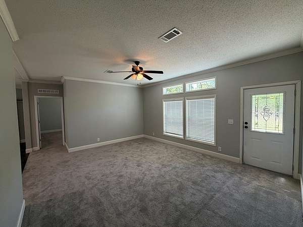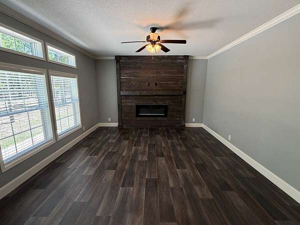 - Ceiling Fans, Crown Molding, Family Room, Fireplace, Gas Range, Kitchen Island, Living Room, Microwave, Open Floor Plan, Pantry, Smoke Detector, Split Floor Plan, w/ Hookups