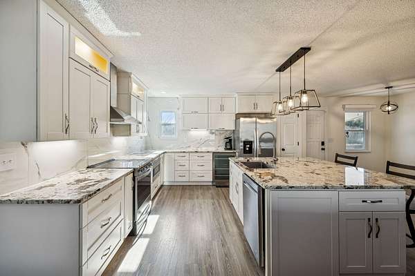 - Built-In Electric Range, Dishwasher, Electric Water Heater, Refrigerator, Stainless Steel Appliance(s), Wine Refrigerator