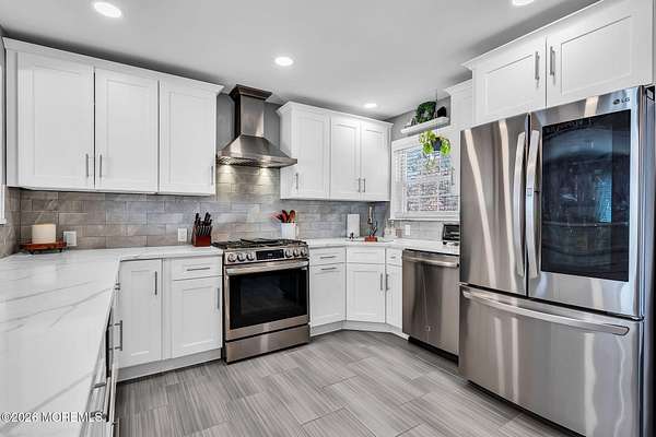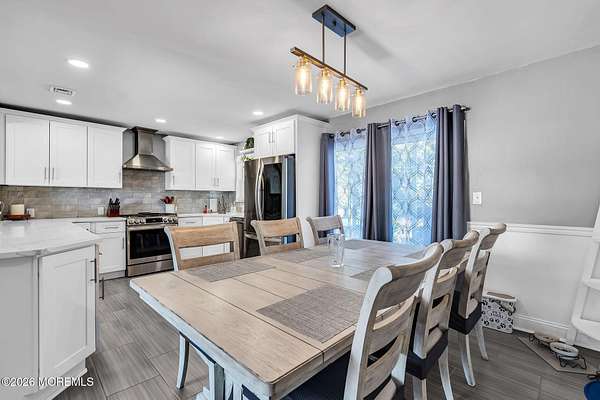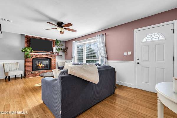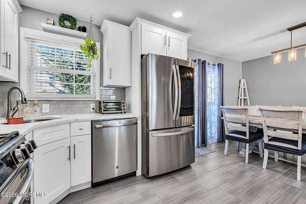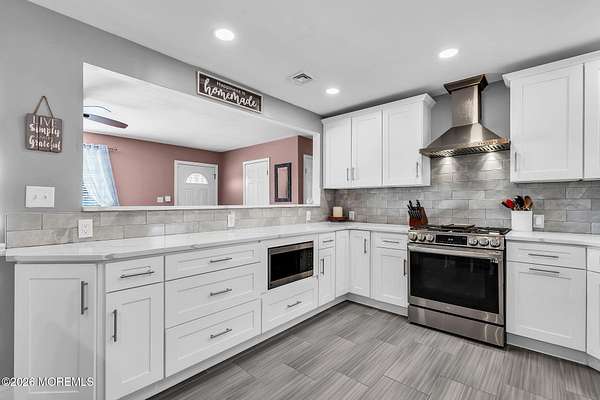 Tastefully updated and beautifully maintained, this 3-bedroom, 2-bath Pine Lake Ranch sits on a spacious 100x125 double lot and offers the perfect blend of style and function. The renovated kitchen features solid wood shaker cabinets with soft-close doors, quartz countertops, custom backsplash, stainless steel appliances including a built-in microwave and stainless vent hood, recessed lighting, tile flooring, and a pantry. Hardwood flooring flows through the main living areas, highlighted by a cozy wood-burning fireplace and professionally painted interiors. The true primary suite offers a tiled shower with tub and upgraded vanity. Additional features include a 2-car garage, pull-down attic with flooring for storage, newer electrical panel, and an in-ground sprinkler system. The massive unfinished basement with high ceilings offers endless possibilities. Outside, enjoy a fully fenced yard, large deck perfect for entertaining, leaf filters, and plenty of space on this oversized property.