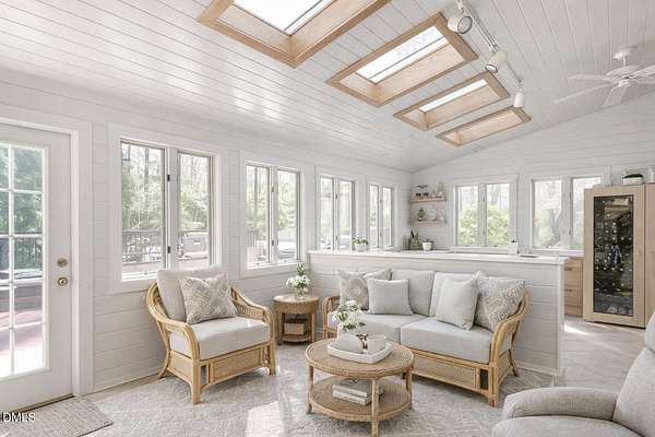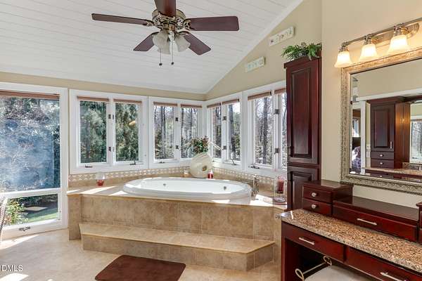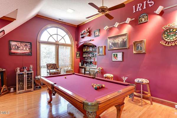 - Bar, Bathtub/Shower Combination, Bookcases, Built-In Features, Cedar Closet(s), Ceiling Fan(s), Central Vacuum, Crown Molding, Double Vanity, Dry Bar, Eat-In Kitchen, Entrance Foyer, High Ceilings, Kitchen Island, Recessed Lighting, Room Over Garage, Separate Shower, Vaulted Ceiling(s), Walk-In Closet(s), Walk-In Shower, Water Closet