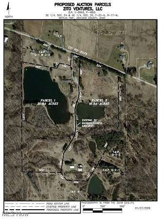 Exciting Land Opportunity. 38+/- Acres In 2 Parcels, Woods, Ponds, Homesites, Bank Barn, Private Setting, Hunting, Fishing, Retreat Potential. Live Onsite with Online Bidding Available. ABSOLUTE AUCTION, all sells to the highest bidder. ONLINE BIDDING BEGINS WEDNESDAY, FEBRUARY 25, 2026, AT 12:00 PM, AND AUCTION LIVE ON-SITE BIDDING WILL BEGIN SATURDAY, FEBRUARY 28, 2026, AT 12:00 PM. Exciting opportunity in Ashland County! 38+/- acres offered in 2 parcels featuring ponds, privacy, and excellent building or recreational potential. A blend of water, wooded acreage, and rolling terrain with scenic views offers potential for secluded homesites, private retreat, recreational getaway, or long-term investment. Multiple ponds provide fishing and wildlife attraction. Well-constructed driveway services both parcels and the adjoining neighbor's parcel. Parcel 1: 20.8+/- acres with approx. 124' frontage. Secluded setting with elevation ideal for a potential homesite. Includes a 124' x 30' building, formerly a military veteran retreat facility, offering substantial square footage and renovation potential. A large pond enhances outdoor enjoyment. Parcel 2: 16.8+/- acres with approx. 524' frontage. Includes a 1,300+ sq. ft. home/cabin, bank barn, pond, open ground, and woods-ideal for a small farmstead, renovation project, or recreational use. Parcels are offered separately, then together. Walk the land at your convenience. The buildings open on auction day, starting at 9:00 AM.