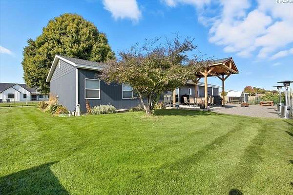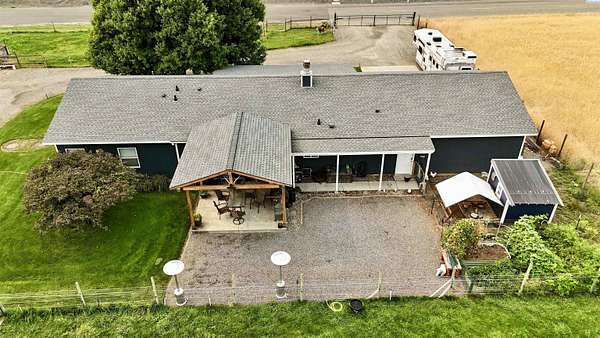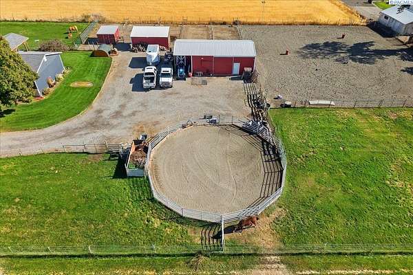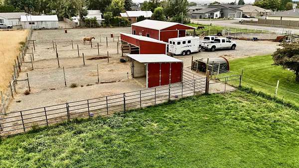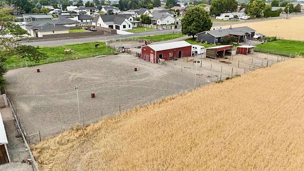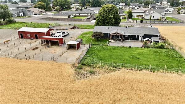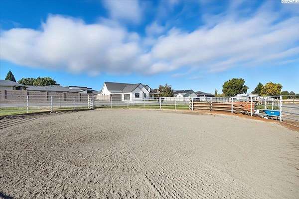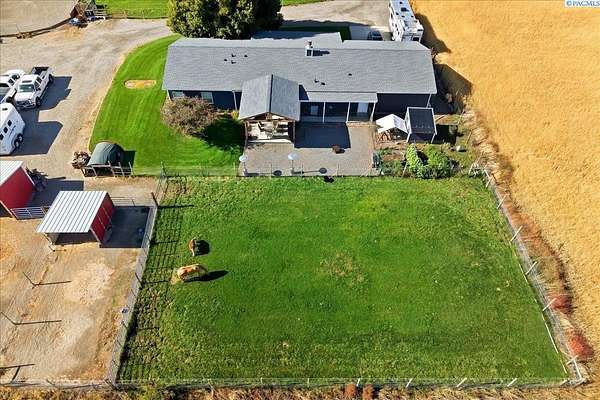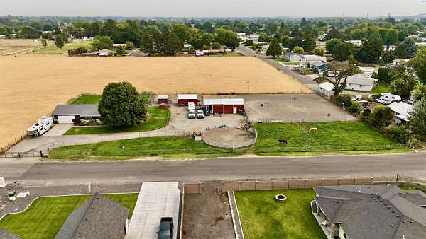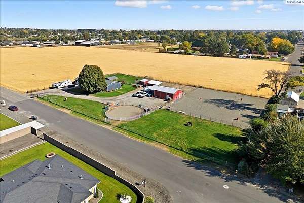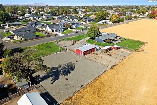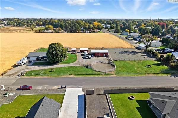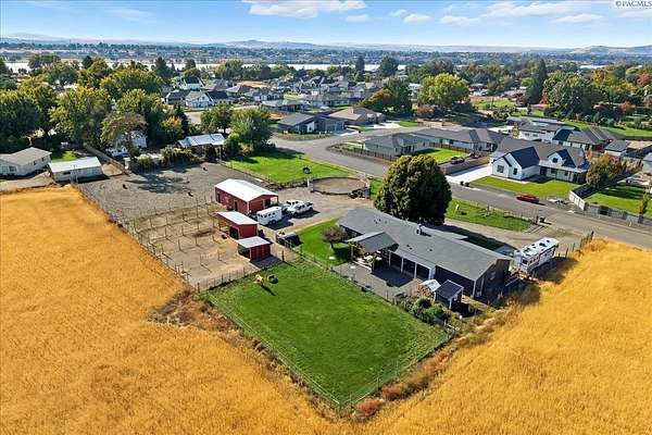 MLS# 288254 Farm life in the city! The Trifecta: A beautiful home, on sub-dividable acreage, situated within the desirable "donut hole" of Pasco. Ideal for equestrian enthusiasts and hobby farmers, this 1.5-acre property offers exceptional versatility. The meticulously maintained rambler provides an optimal layout, featuring three bedrooms and two bathrooms, with both a separate family room and living room to ensure efficient traffic flow. Entry to the fully fenced premises is secured with an electric gate operated by keypad , cellular and remote.A spacious utility/mud room adds further practicality, while a modern HVAC system is managed through NEST thermostats making it comfortable throughout the home. The oversized garage is equipped with its own mini-split heating and cooling system. Bedrooms are generously sized, with the Owner's suite offering dual walk-in closets. All appliances are included with the sale. It is an Alexa smart home so most switches, lights, cameras, door locks, HVAC etc are app controlled.The backyard patio, enhanced by a majestic beamed pergola making you feel like you are in a mountainside resort, presents an inviting space for morning coffee and relaxation. Raised garden beds and a custom-designed chicken coop (with up to 19 chickens included if you like) complement the outdoor amenities. Security features include a 2 camera systems Lorex/Ring for a total of 22 cameras covering the entire property and electronically coded exterior doors for added safety. Roof was redone in 2024 with 50 year GAF shingle warranty. More extras: 30 amp RV service, 50 amp welding service, 70amps to barn and App controlled UGS. Equine facilities comprise entirely fenced and cross-fenced pastures, a five-stall barn with an electric fly sprayer in the shelter area, a lighted round pen, and a separated lighted arena for riding and exhibitions. The barn benefits from dedicated power and water supplies, including its own hot water heater, a hose and spigot for arena summer dust management, and frost-free spigots for winter use. The temperature-controlled tack room, supported by its own mini-split HVAC, safeguards food, medications, and precious equipment.Enjoy proximity to urban conveniences along with the tranquility of rural living. You just couldn't ask for more so close to the city yet feel like you are hundreds of miles away from civilization. With subdivision potential, this property also provides valuable future opportunities.