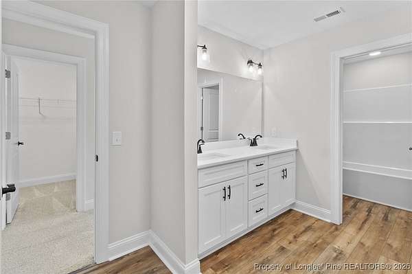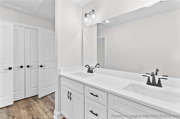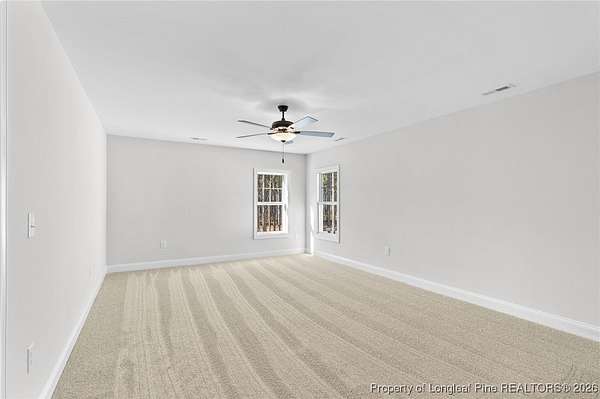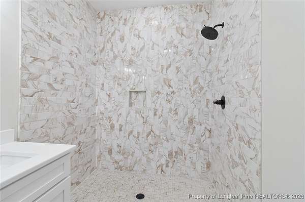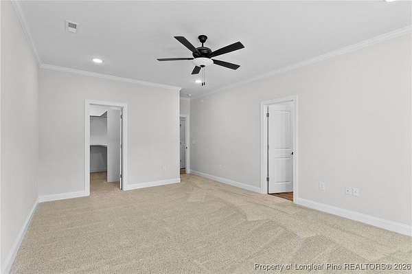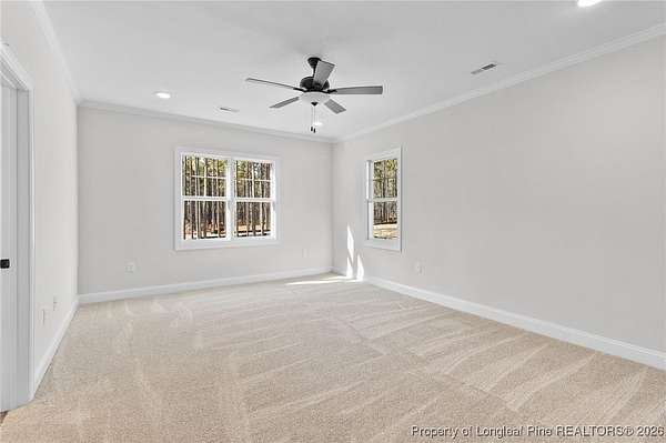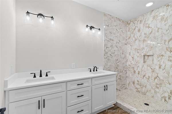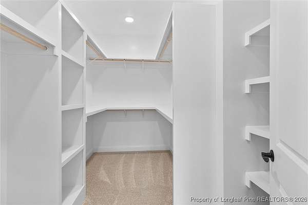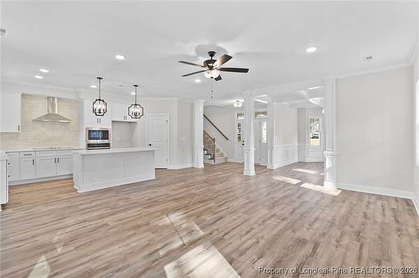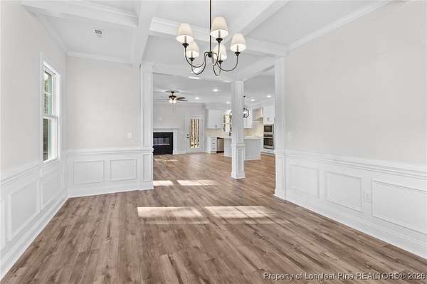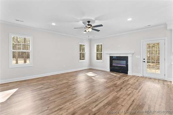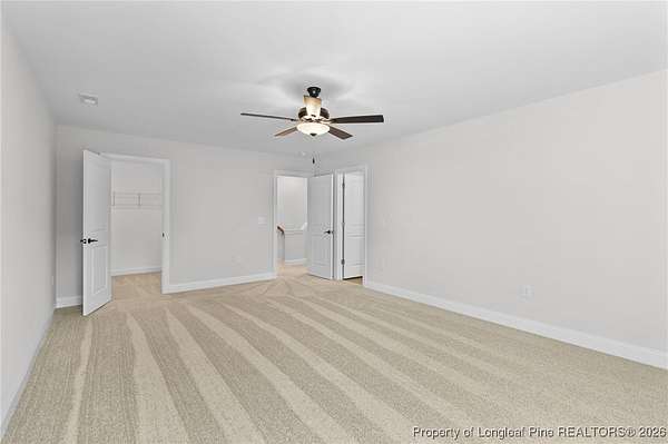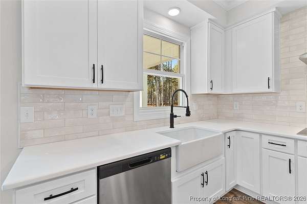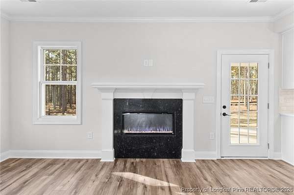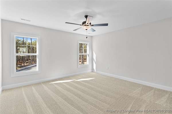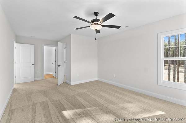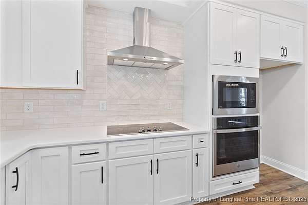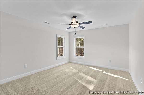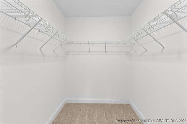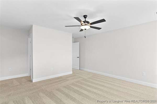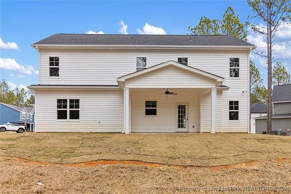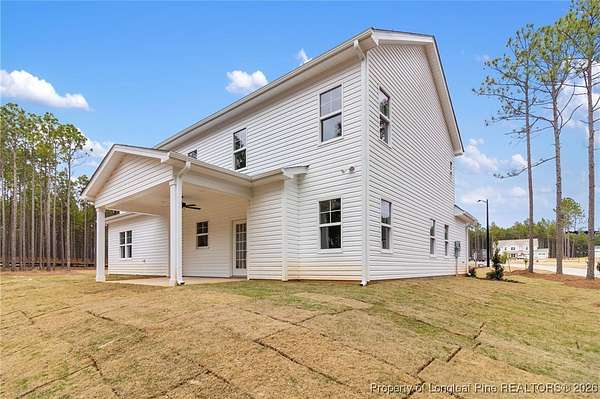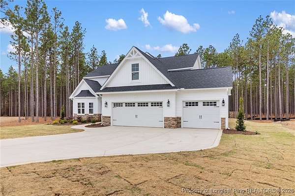 Stunning new 2-story home on over 3 private acres, perfectly positioned in a quiet cul-de-sac within a beautiful, gated community on the desirable north side of Fayetteville, NC. Surrounded by mature trees and large estate-style lots, this home offers exceptional privacy while being just minutes from Fort Bragg, shopping, and top conveniences. A spacious front porch welcomes guests and leads into a bright foyer filled with natural light from the transom and sidelights. To the left, enjoy a formal dining room featuring a box-tray ceiling, bay window, and elegant wainscoting-ideal for hosting gatherings and holidays. The large living room showcases a sleek modern electric fireplace and flows seamlessly into the gourmet kitchen, which includes: . Island with breakfast bar . Level 3 quartz countertops . Farmhouse sink . 42" cabinetry & upgraded lighting package . Walk-in pantry with custom wood shelving . Stainless steel range with hood . Wall oven with multi-function microwave . Customized tile backsplash Just off the kitchen, the oversized covered porch offers the perfect space for morning coffee, evening relaxation, or outdoor entertaining-all while enjoying your 3+ acre property. The first-floor primary suite is spacious and thoughtfully designed, featuring a walk-in closet with custom wood shelving and a luxurious ensuite bath complete with a beautifully tiled shower, double vanity, and private water closet. A guest bath and a laundry room with cabinetry complete the main level. Upstairs, you'll find three large bedrooms, two full bathrooms, and a versatile bonus room with a closet-ideal for a media room, playroom, home office, or additional guest space. This exceptional home combines privacy, luxury, and convenience in one of Fayetteville's most desirable gated communities. Move-in ready and built to impress!