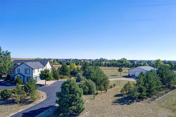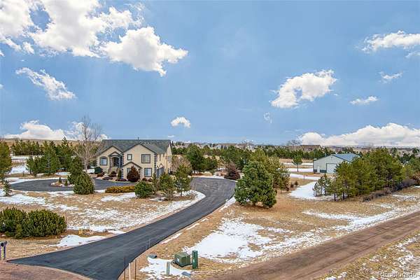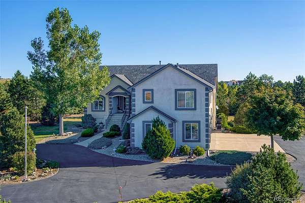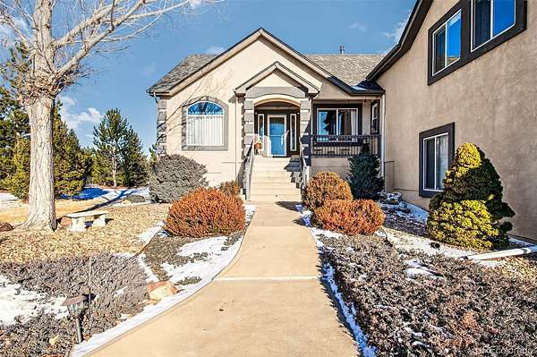 Main-Level Living...Impeccably Maintained, ONE-OWNER Semi-Custom Stucco Rancher, On 7.22 Pristine Acres With A Beautiful Mix Of Mature Trees, Open Meadow, And Mountain Views. Designed For Elegance And Function With Two Luxurious Owner Suites Perfect For Multi-Generational Living, A Walk-Out Basement, And A Fully Finished 48x42 Outbuilding, Ideal For Collectors, Hobbies, Or Additional Garage Space. The Open, Light-Filled Floor Plan Features Vaulted Ceilings, Oak Hardwood Flooring Throughout The Dining Room, Great Room, Kitchen, And Hallways. The Expansive Great Room Showcases Custom Built-Ins, A Gas-Log Fireplace, And Walk-Out Access To A Private Deck Overlooking The Ponderosa Pines. The Gourmet Kitchen Includes Custom Cabinetry, Under-Cabinet Lighting, Granite Countertops, An Oversized Island With Prep Sink, Gas Range, A Cozy Breakfast Nook, And A Spacious Pantry. The Primary Suite Offers A 5-pc Bath, Walk-In Closet, And A Cozy, Private Deck With Views. The Second Suite Is Generously Sized With An Oversized Sitting Area, His-And-Hers Closets, And Stunning Pikes Peak Views. A Conveniently Located Laundry And Guest Bath Sit Between The Suites, While The North Wing Hosts Two Additional Guest Bedrooms And A Full Bath. The Lower Level Features A Large Family Room, Wet Bar, Gas Fireplace/Stove, Theater Area, 9-foot Ceilings, And A Walk-Out To A Private Patio. Ample Unfinished Space In The Lower Level Allows For Future Expansion Of Up To Three Additional Bedrooms And A Bath, Or The Creation Of A Fitness Studio, Hobby Space, Or Storage. Notable Features Include A Newer Roof, Furnace, A/C, Water Heater And Water Softener. A Safe Room, Leaf-Filter Gutters, Green House, 3-Car Attached Garage, And A Finished Outbuilding With Concrete Floor, 220V Power, And An Overhead Door. Zoned For Horses And Located On A Quiet Cul-de-Sac With Paved Roads, Minutes From Shopping, Dining, Golf Course, And Easy Access To Peterson, Schriever Or The Air Force Academy. Don't Miss This Opportunity!