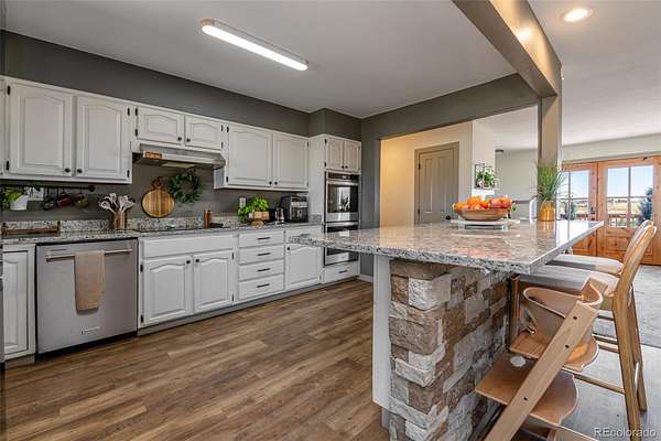 Peaceful Valley Lake Estates is one of the best kept secrets in Colorado Springs! This large 5.64 acre lot in is ready for new owners. This home has been completely remodeled with tons of upgrades inside and out. Check out the Floor plan in the photos! You will fall in love with the Ranch Style, open concept and large bedrooms on the main level. Walking into the home we hope you will be instantly impressed with the brand new front doors, beautiful floors, tall ceilings, lots of natural light, Air Conditioning and open floor plan. The kitchen has an oversized granite island, newer appliances, double oven, two pantries and it's wide enough for more than one chef to cook at a time! The dining room is perfectly placed with a door to the fenced in backyard. The patio has a pergola and hot tub! The main floor has Updated bathrooms, flooring throughout and brand new carpet in all the well sized bedrooms with spacious closets. The Master bathroom was designed with you in mind. Modern, clean and spa like! Head down to the basement and you'll never want to leave. Three large bedrooms with another great open concept space to relax in. The gas fireplace creates a cozy feel yet the basement is full of light and even has a door to the backyard. Plumbing rough outs if you'd like to add a kitchenette. Zoned for horses, this property has a large 60x60 Pole Barn, Storage Shed, 40x15 Loafing Shed, large bougee Chicken coop and a shooting berm! Located in South Colorado Springs near Fountain and our military bases there is a quick commute to I25. Homes don't come up for sale in Peaceful Valley Lake Estates often so come see it today!