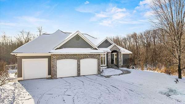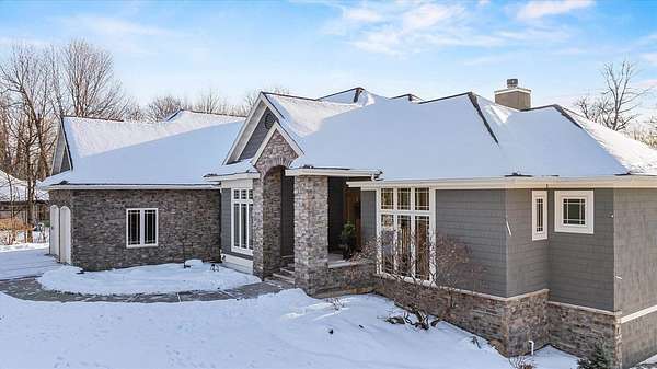 Welcome to 111703 Turtle Ridge Rd. Discover unparalleled luxury in this exceptional six-bedroom, four-bath ranch with a three-car garage, situated on 39.5 partially wooded acres with breathtaking 3600 feet of river frontage. A grand foyer welcomes you into the home, seamlessly connecting the formal dining room, living room, and kitchen. The open-concept living room features vaulted ceilings, a stunning view of the backyard, and a cozy wood-burning fireplace. The kitchen boasts quartz countertops, high-end appliances, ample cabinetry, and a charming breakfast nook. The split floor plan includes a spacious laundry room with a dog wash station, with a washer and dryer included. The expansive main bedroom suite offers a full bath with double sinks, a tiled walk-in shower, a Jacuzzi tub, and a huge walk-in closet. On this side of the home, conveniently located off the garage entrance, you'll find an additional walk-in closet, a utility closet, and a built-in coat and sitting area. On the other side of the home, there is a large bedroom with a walk-in closet and a full bath. An open staircase leads to a finished family room featuring a built-in bar with a refrigerator and dishwasher, along with an entertainment center equipped with a TV and stereo system. The lower level also includes four additional bedrooms and two full bathrooms, one of which is an ensuite. The home offers ample storage options and features in-floor heating on the lower level, which walks out to a park-like backyard. The beautifully and professionally landscaped grounds include a fireplace area, creating an ideal setting for entertaining or relaxing while enjoying serene river views. Located at the end of a dead-end road, this private retreat seamlessly combines luxury, functionality, and natural beauty. Don't miss your chance--call today to schedule your personal showing!