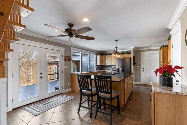 Welcome home to this charming Craftsman-style retreat, nestled on 5.09 private acres close to Coler Mtn. bike trails. Enjoy peaceful mornings on the covered front porch or entertain all summer in your in-ground swimming pool. This beautiful home features rich wood floors, crown molding, tons of natural light, a formal dining with wood pellet stove, and a large office/flex space. The kitchen is a dream with center island, granite counters, double ovens, undermount sink, and pantry. Upstairs you will find the primary suite, 2 additional bedrooms, and a very large bonus space with options to add another bathroom and kitchenette! The bonus space also features a private staircase to the 3-car garage area! So many options and opportunities to make this home fit your needs! Don't miss the 29' by 13' encapsulated storm shelter and the 11X11 shed with roll up door/perfect for your future pool bar! Also listed with 2 acres.