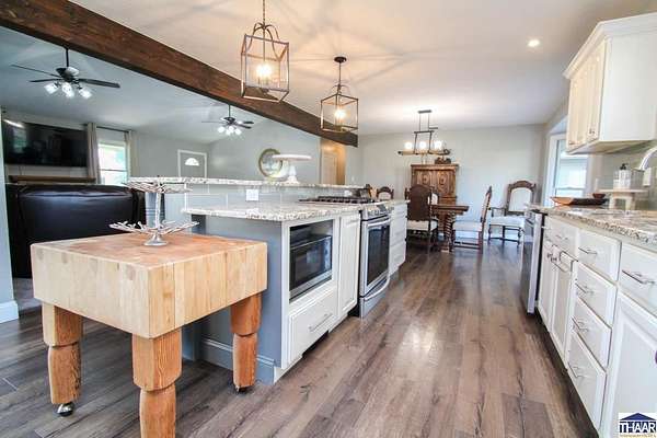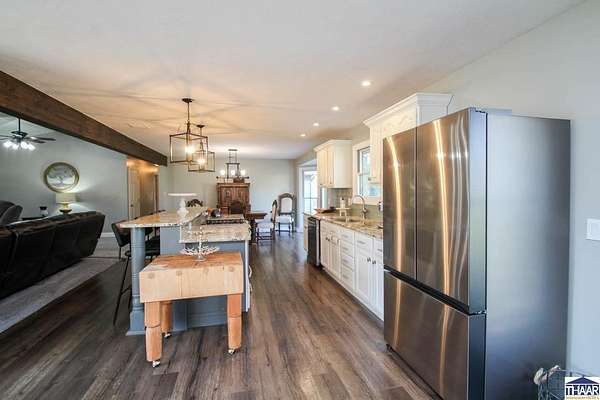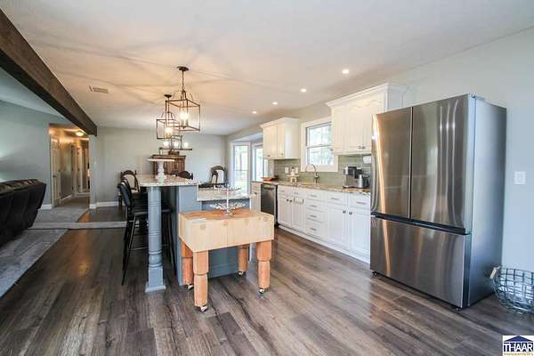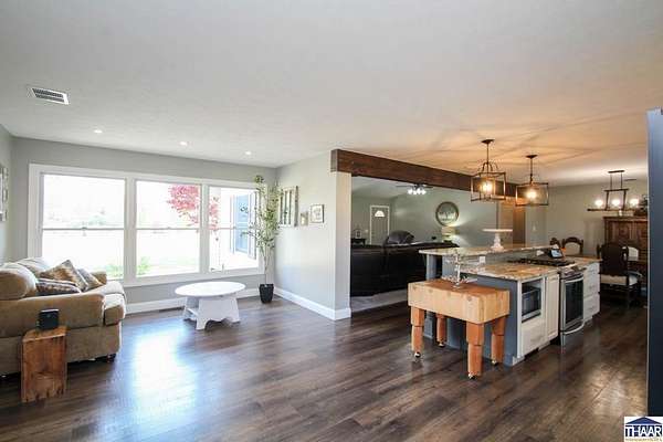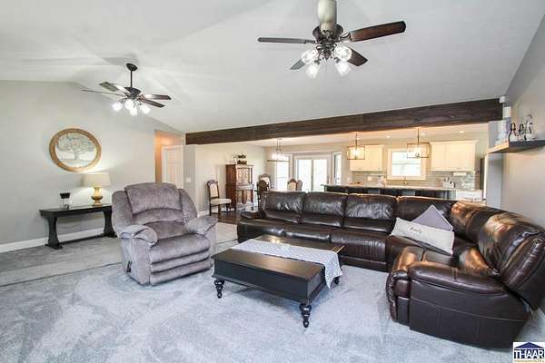 Custom-built 3-bedroom (potential 4th) ranch home situated on 1.66 acres with a fully fenced backyard, offering space, privacy, and flexibility. This well-maintained home features 3 full baths and a thoughtfully designed layout with generously sized bedrooms, large closets, and abundant storage throughout. The updated kitchen is the heart of the home, showcasing a stunning 9-ft island, granite countertops, and a cozy sitting area—perfect for gathering and everyday living. The expansive family room includes a bar area and additional storage space(8x13), ideal for entertaining. Additional highlights include an attached 3-car garage with a dedicated storage room(13x15.6), plus numerous major updates: roof replaced in 2014, water heater (2024), furnace and central air (2024), all new carpet (2026), and a refrigerator just 3 months old. A rare combination of modern updates, functional space, and acreage—this home is move-in ready and offers room to grow! Do not wait make this oasis your own. Call a local Realtor today!!!