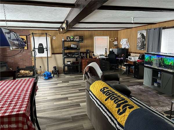 Completely renovated home situated on 3.6 acres in the desirable Huntsburg, Ohio. This move-in-ready property offers extensive updates inside and out, including a new metal roof, new windows, and an attached two-car garage. The beautifully updated kitchen features quality KraftMaid cabinetry and all new appliances. A large living room with a wood burner provides a warm and inviting space, perfect for entertaining. The home offers a spacious primary bedroom and updated living spaces throughout. Walk-out basement adds convenience with direct access to the two-car garage and additional storage or workshop potential. Outside, enjoy the peaceful setting along with a 42x24 barn, ideal for storage, hobbies, or livestock. Plenty of room to roam with 3.6 acres-schedule your private showing today!