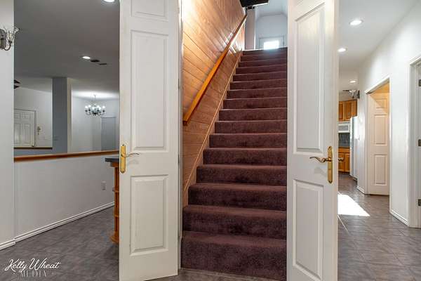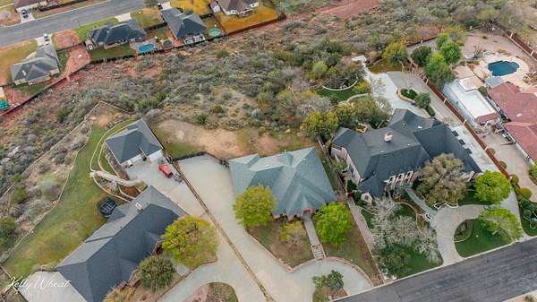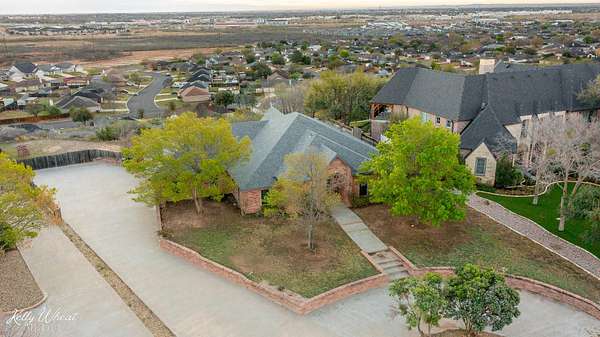Picture yourself overlooking the San Angelo skyline as you sip lemonade and eat barbecue cooked on your outdoor grill while watching football. This house is perfect. This one of a kind, custom built home, sits at the top of the prestigious Bluffs neighborhood, and is just minutes away from shopping and restaurants. The living area is open to the dining space as well as the spacious kitchen . The kitchen features tons of cabinets and a great island that gives you more seating space. Downstairs you will find two large bedrooms, each featuring their own bathroom. The closet space is incredible.... you'll have to see it to believe it. The upstairs suite has so much space that you could even have a workout area or home office. This bedroom also features en suite bathroom. It boasts another breathtaking view of San Angelo from the balcony. Enjoy the luxury of a four car garage that has so many touches to make working in the garage so much more organized and convenient. This home will put a SONG IN YOUR HEART !